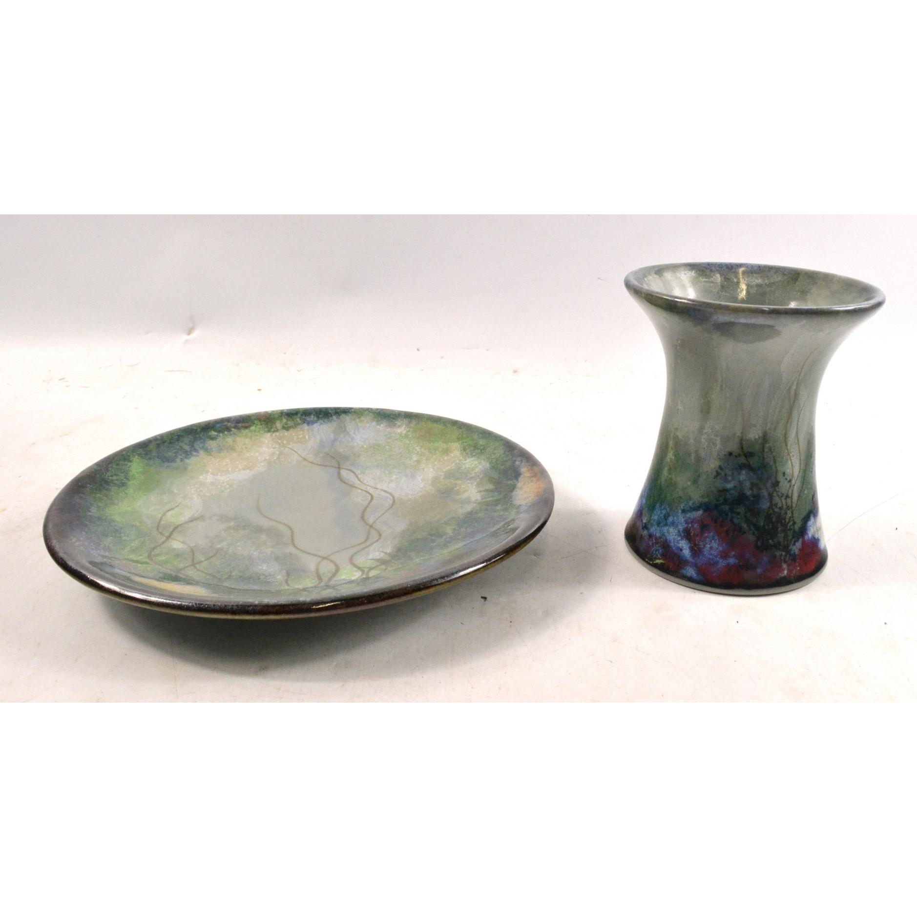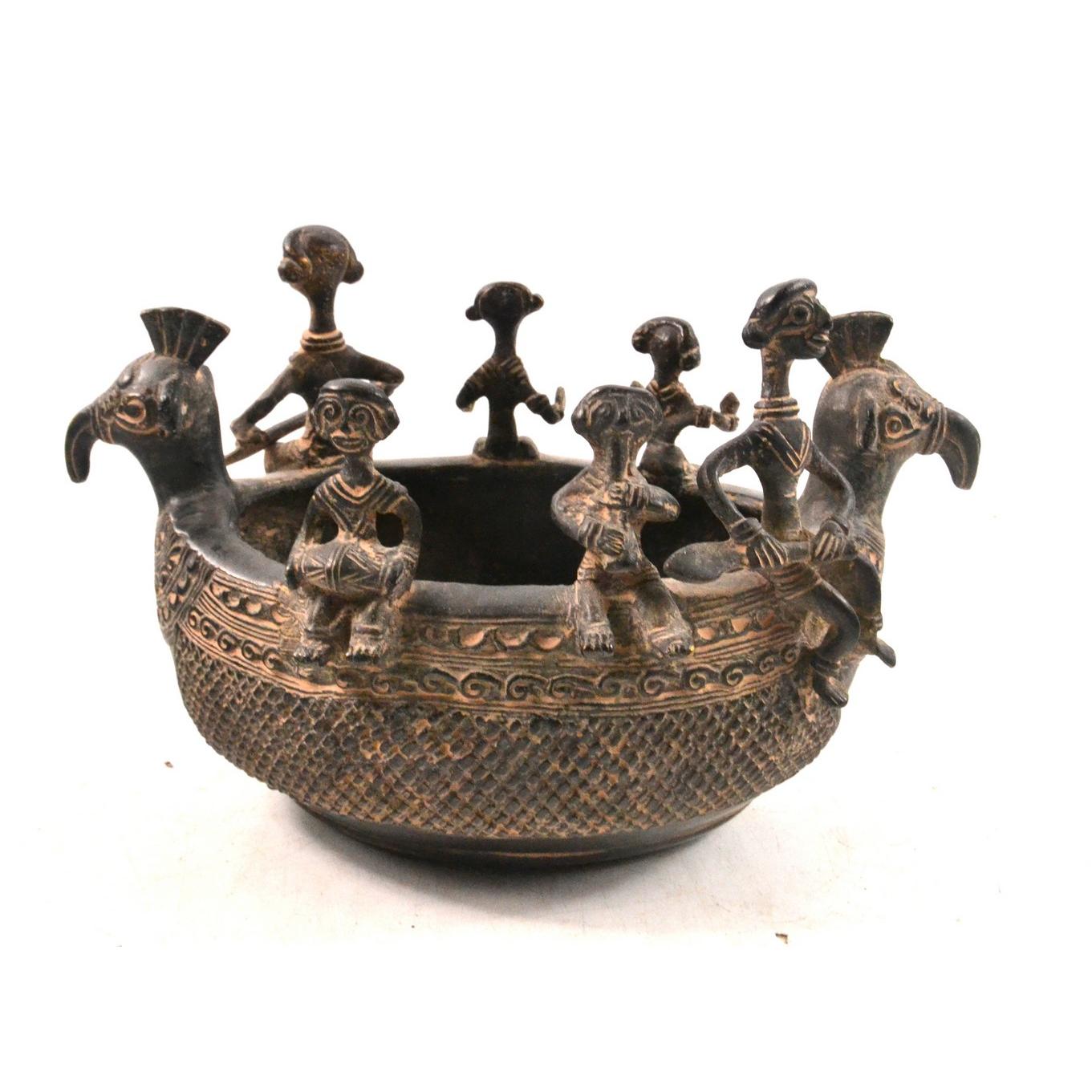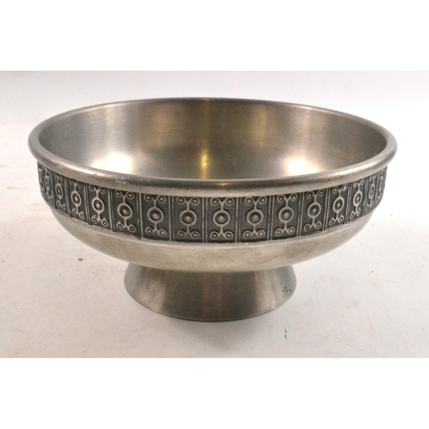 NORWEIGAN PEWTER highly decorated raised bowl 27cm diameter with a lidded oval pewter style box 9cm length