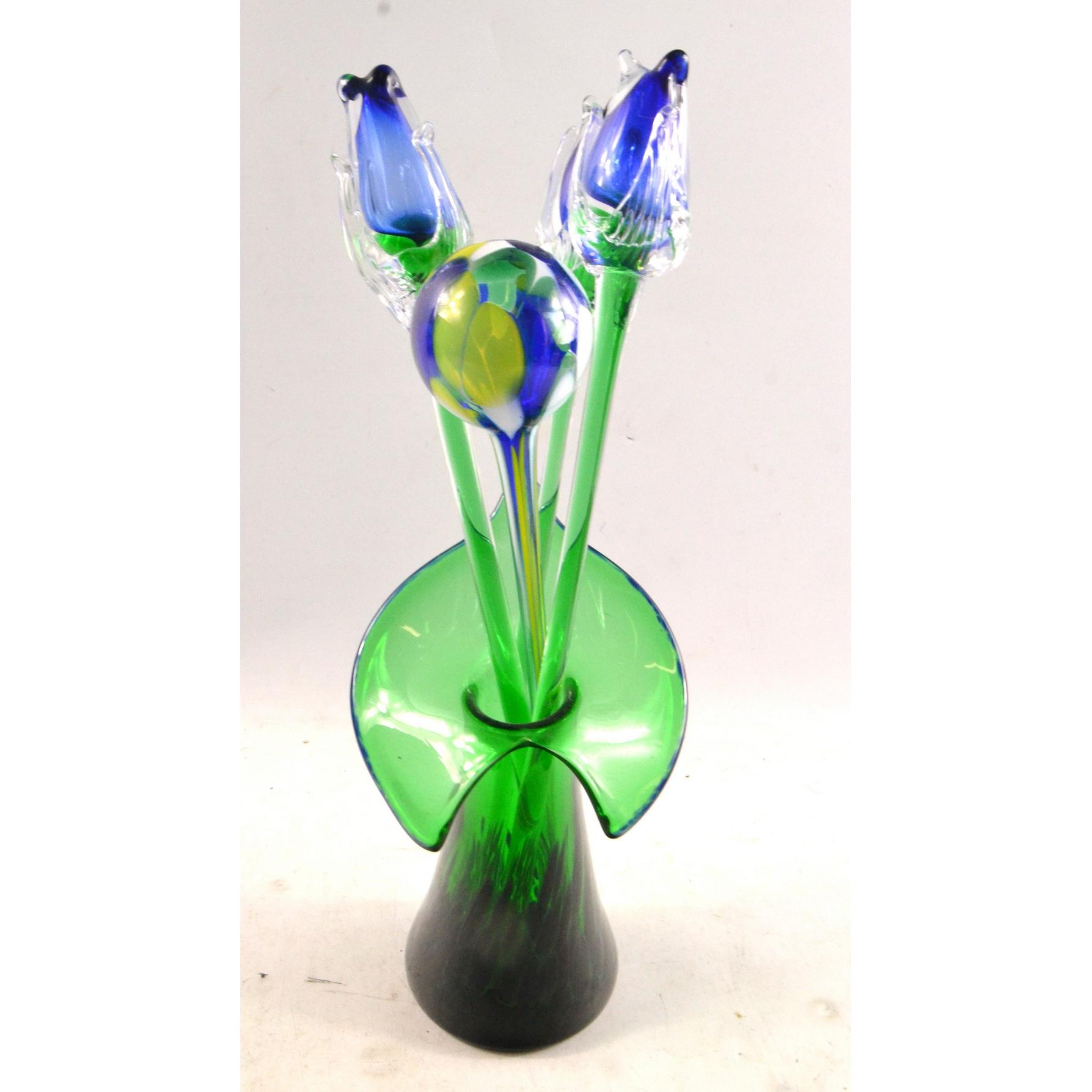 UNUSUAL TIFFANY inspired table lamp in a green white pink and red design 40cm height