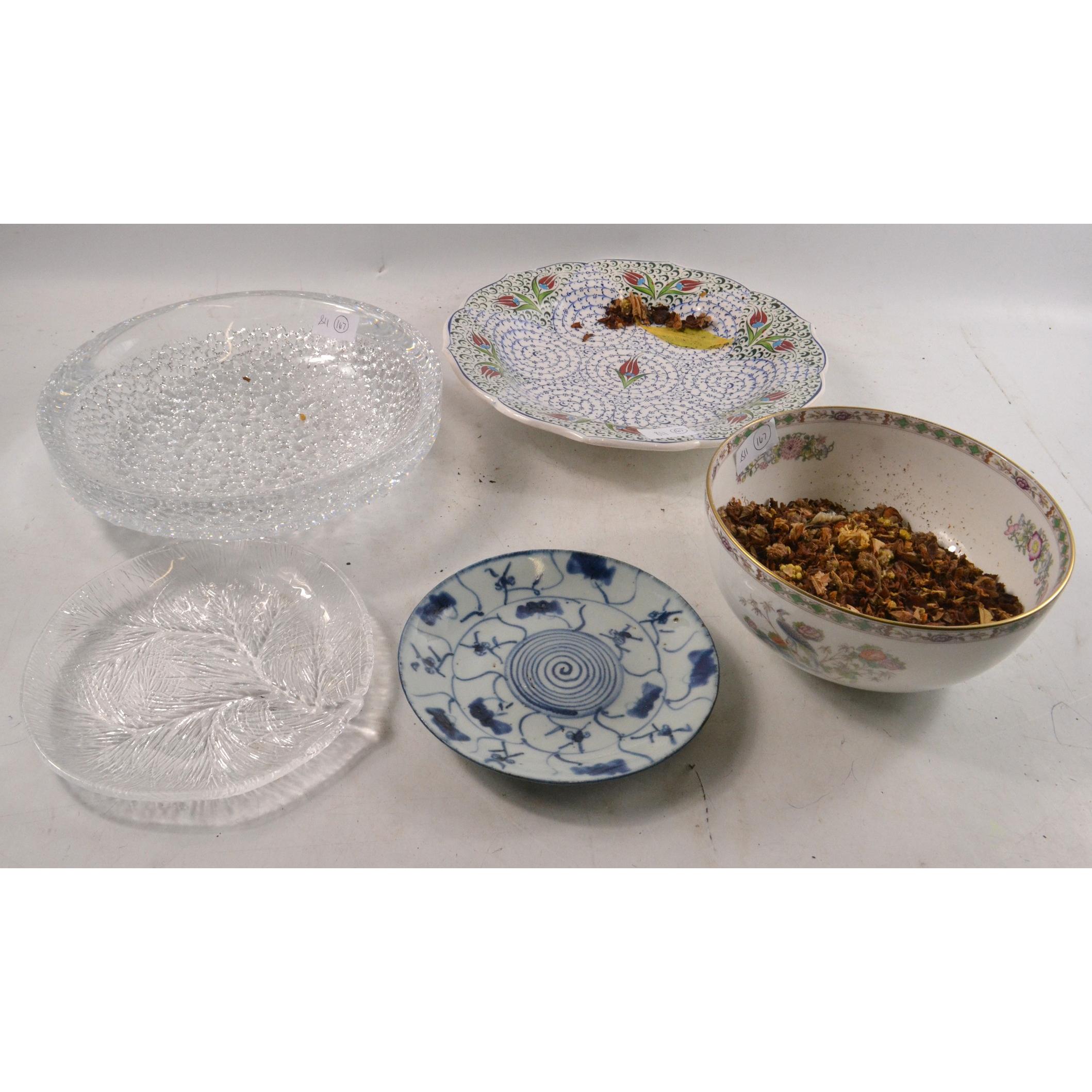 SUPER QUALITY GLASS SHALLOW BOWL 32cm with three other plates and a FINE bowl