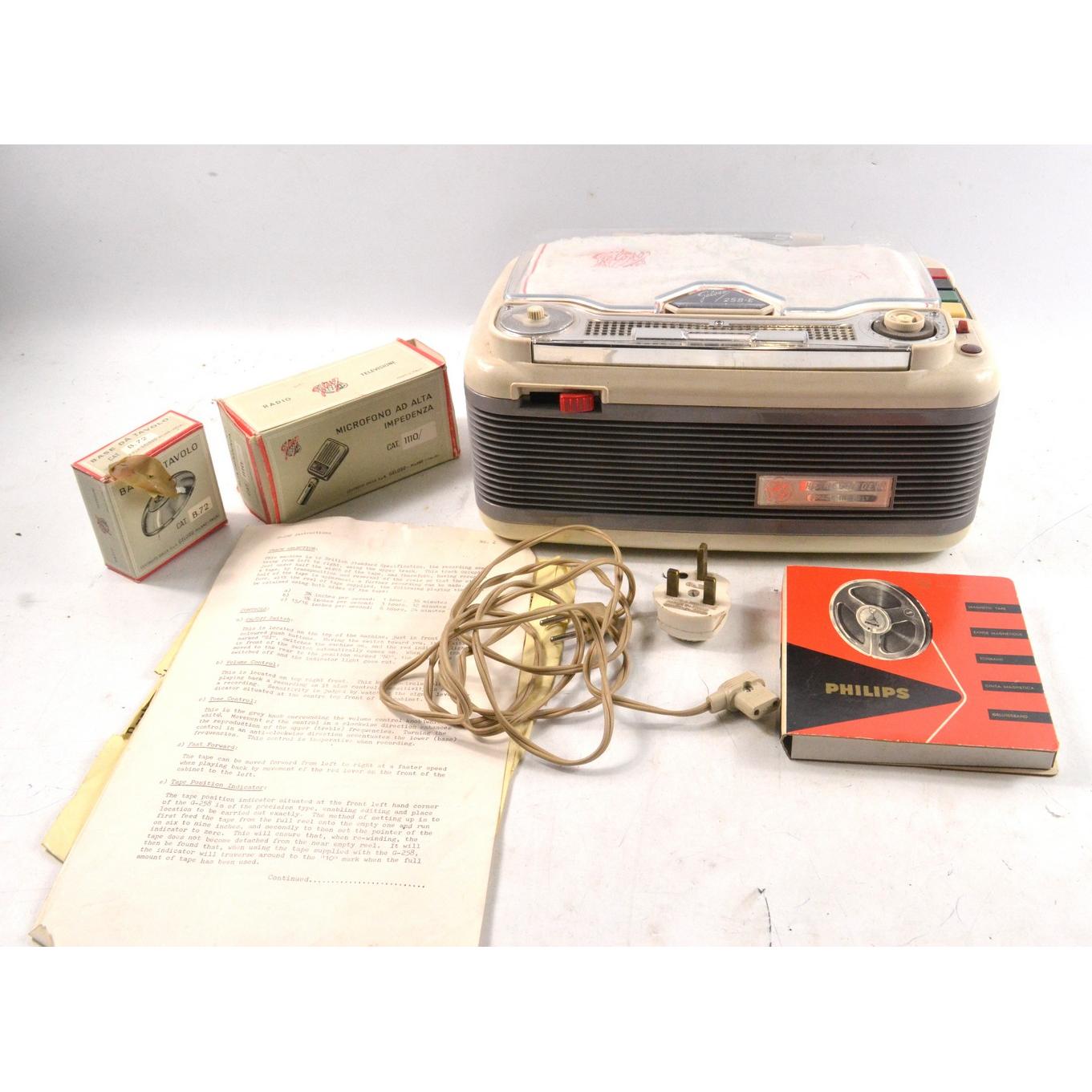 Vintage Geloso 258-E reel to reel player with spare tapes, original box and instructions