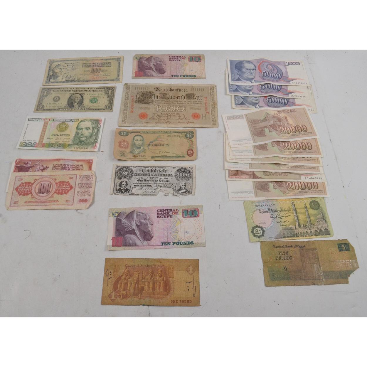 An assortment of World bank notes to include REICHSBANKNOTE 1000, Egyptian note, Yugoslavian notes, Confederate States of America, Peruvian not etc etc