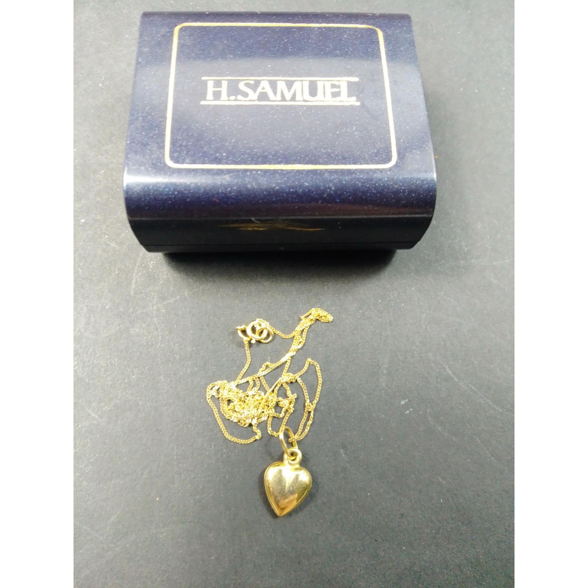 A small 40cm 9K marked chain with a gilt coloured unmarked heart