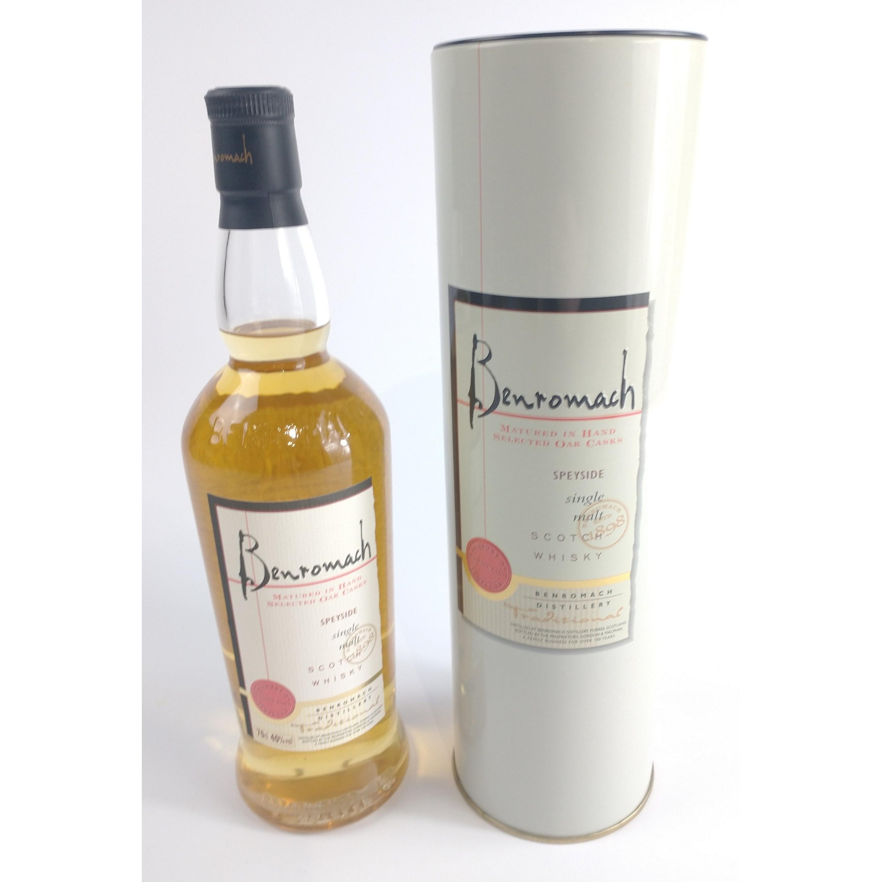 A bottle of BENROMACH Speyside traditional malt whisky, 70cl, in presentation tin