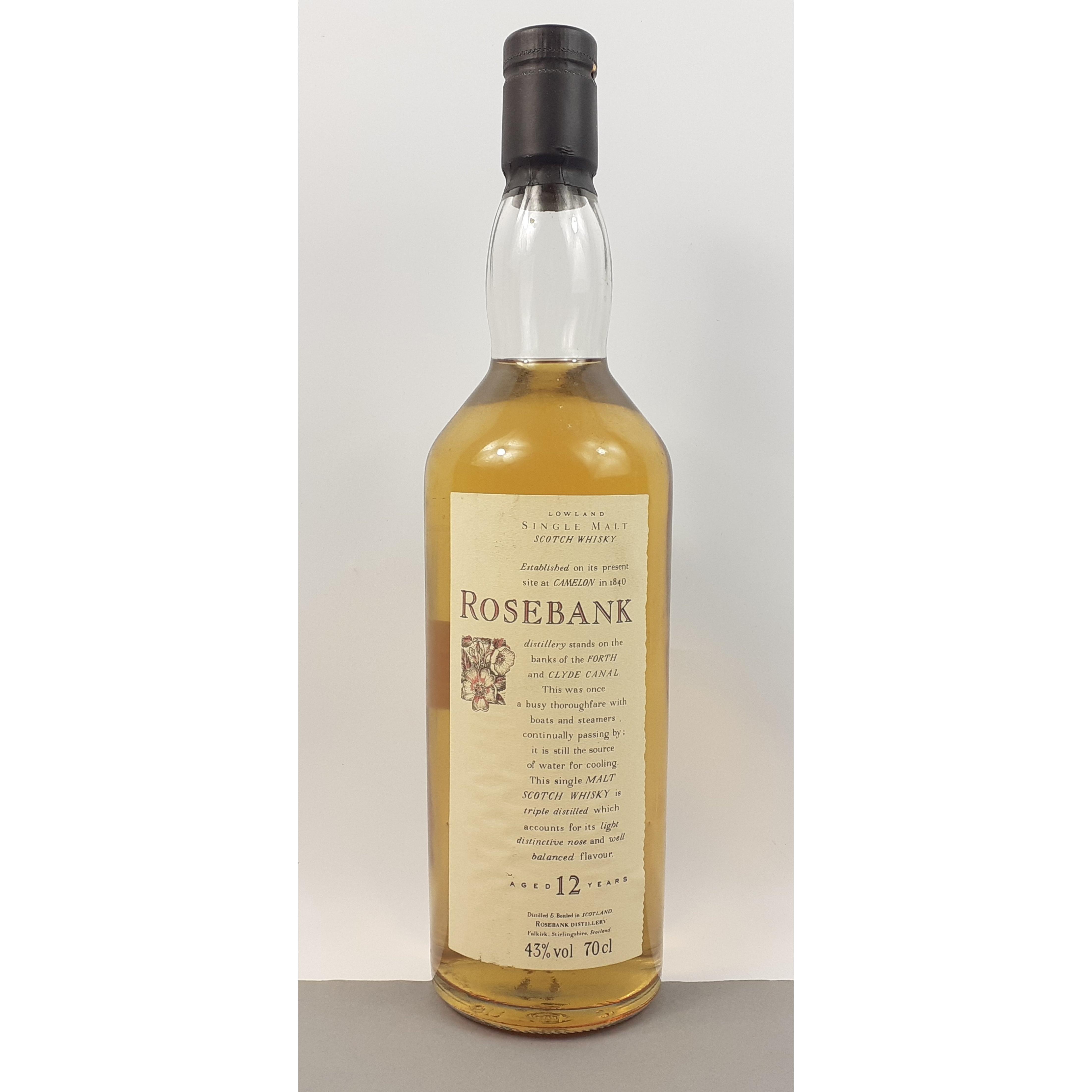 A 70cl bottle of ROSEBANK single malt whisky aged 12 years, gifted at Christmas 2008 with an admonition not to open the bottle, whisky level 20.5cm from base, label intact