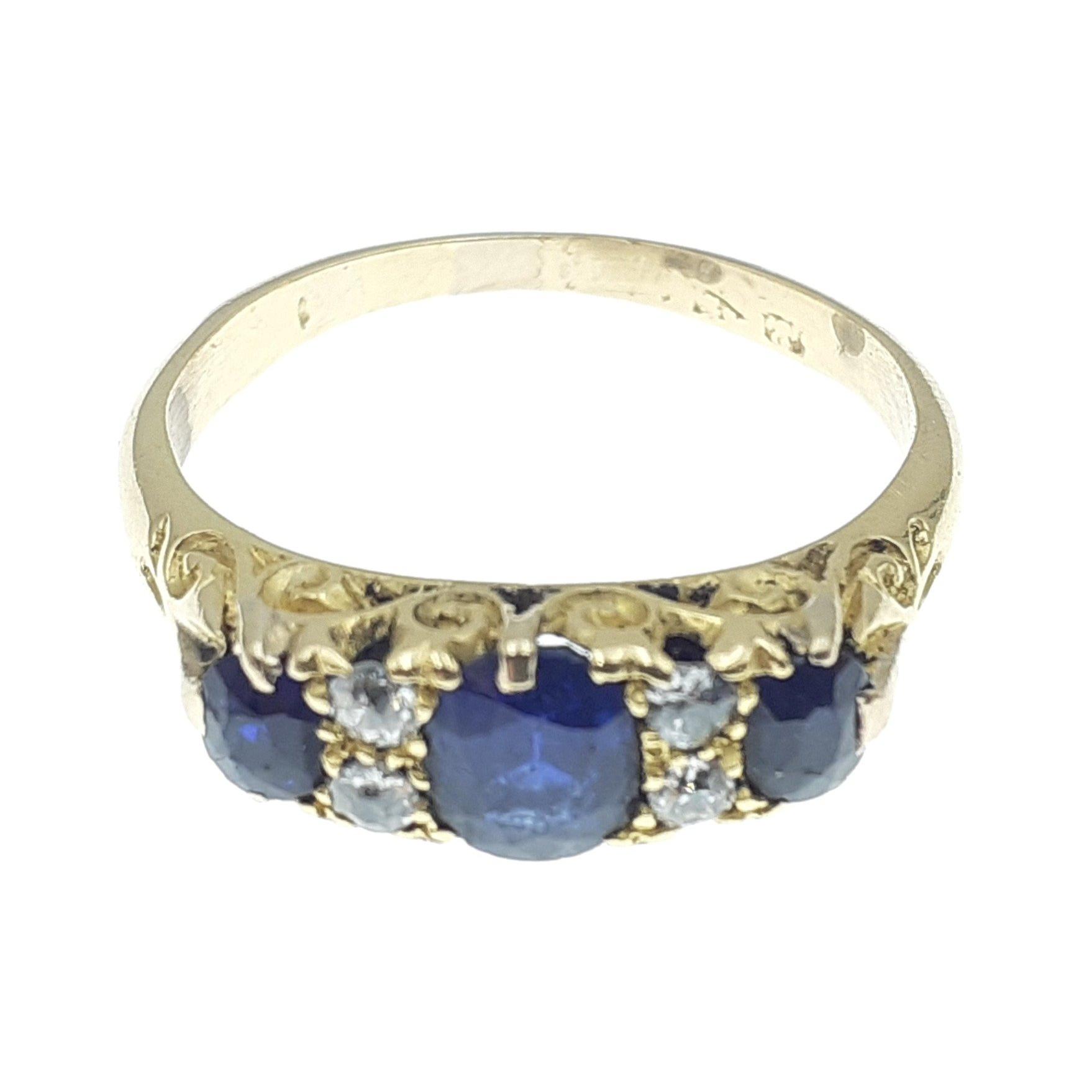 SCINTILLATING SAPPHIRE and DIAMOND (tested) combination ring - ring size P/Q - gross weight 3.88g approx - larger SAPPHIRE dimensions 5mm x 4mm approx Hallmarks indistinct/rubbed - comes with a charming vintage jeweller's box