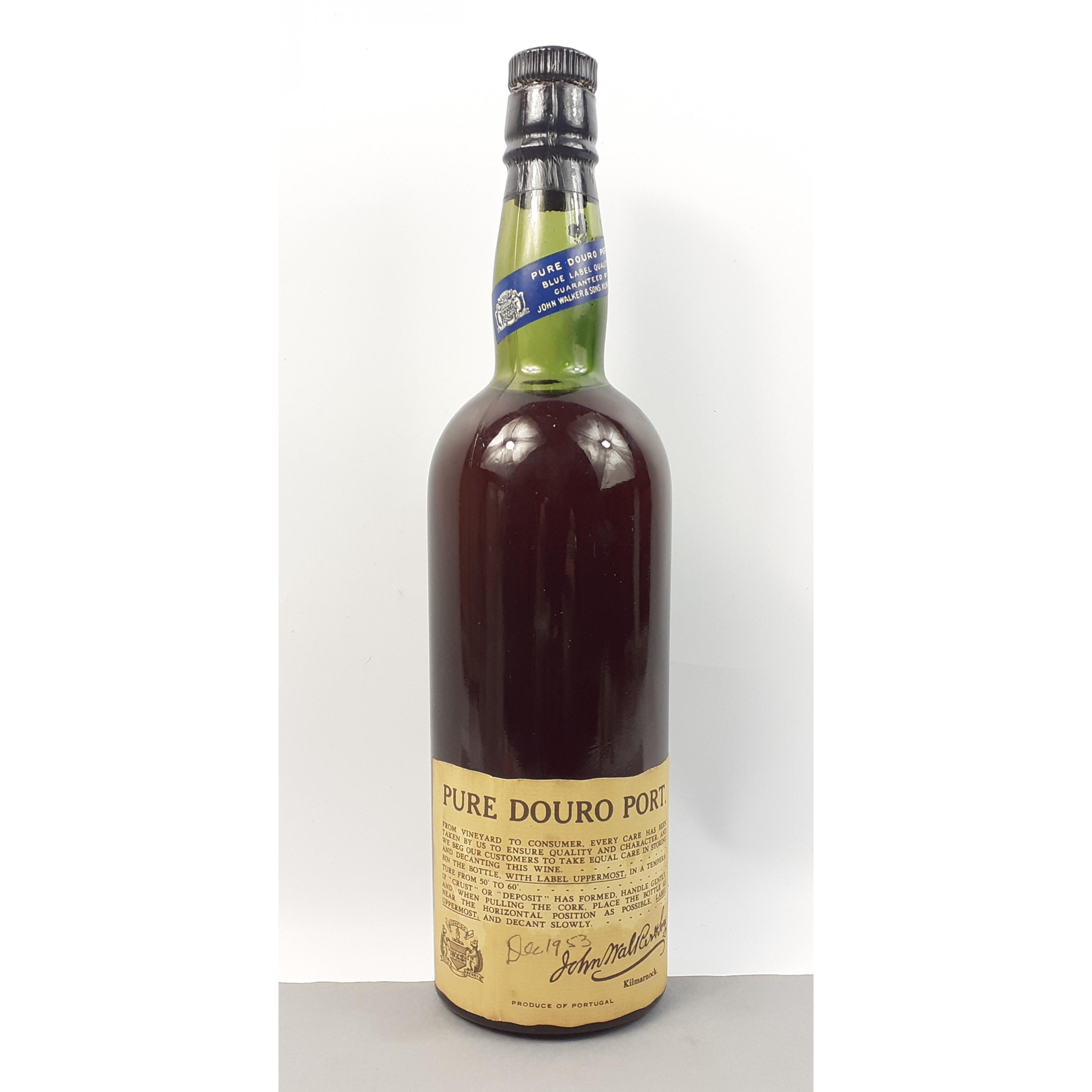 RARE! VINTAGE PURE DOURO PORT (70cl size approx as no size stated) GUARANTEED BY JOHN WALKER & SONS BLUE LABEL QUALITY- Proudly displaying Kilmarnock's Confido Gold Berry coat of arms No stated ABV or bottle size, but approximately 70cl Bottle and label in good condition A miniature black label port sold at auction for £70 March 2022 - current label has a pencil date of Dec 1953