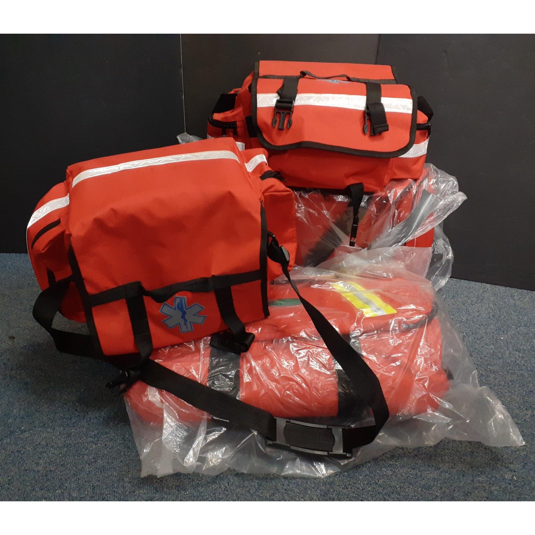 Two silver wireless microphone and hi-fi speakers in soft quality cases