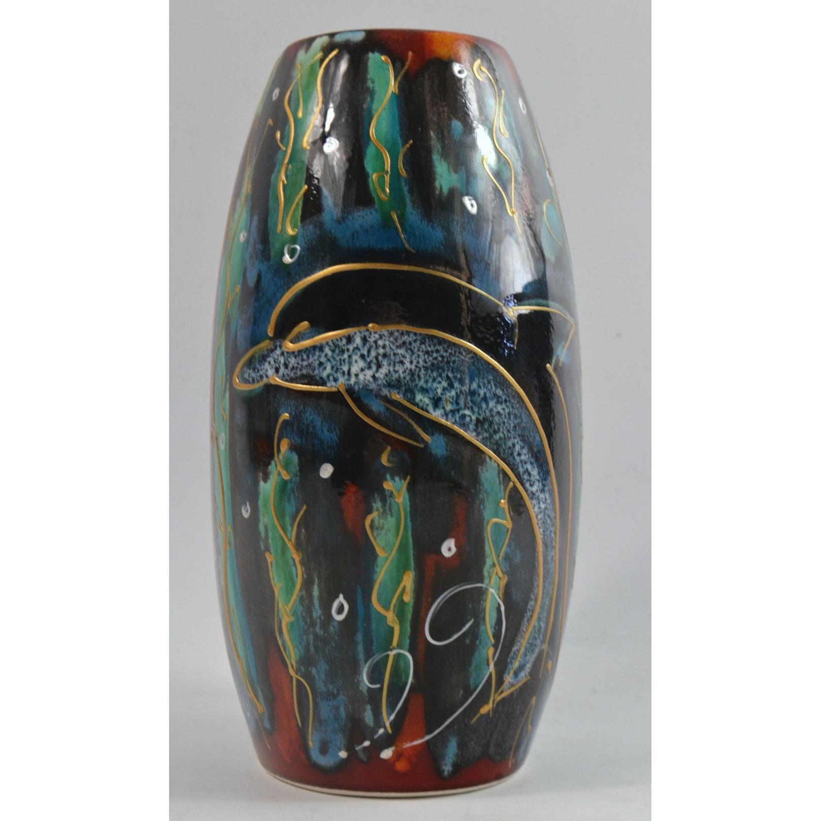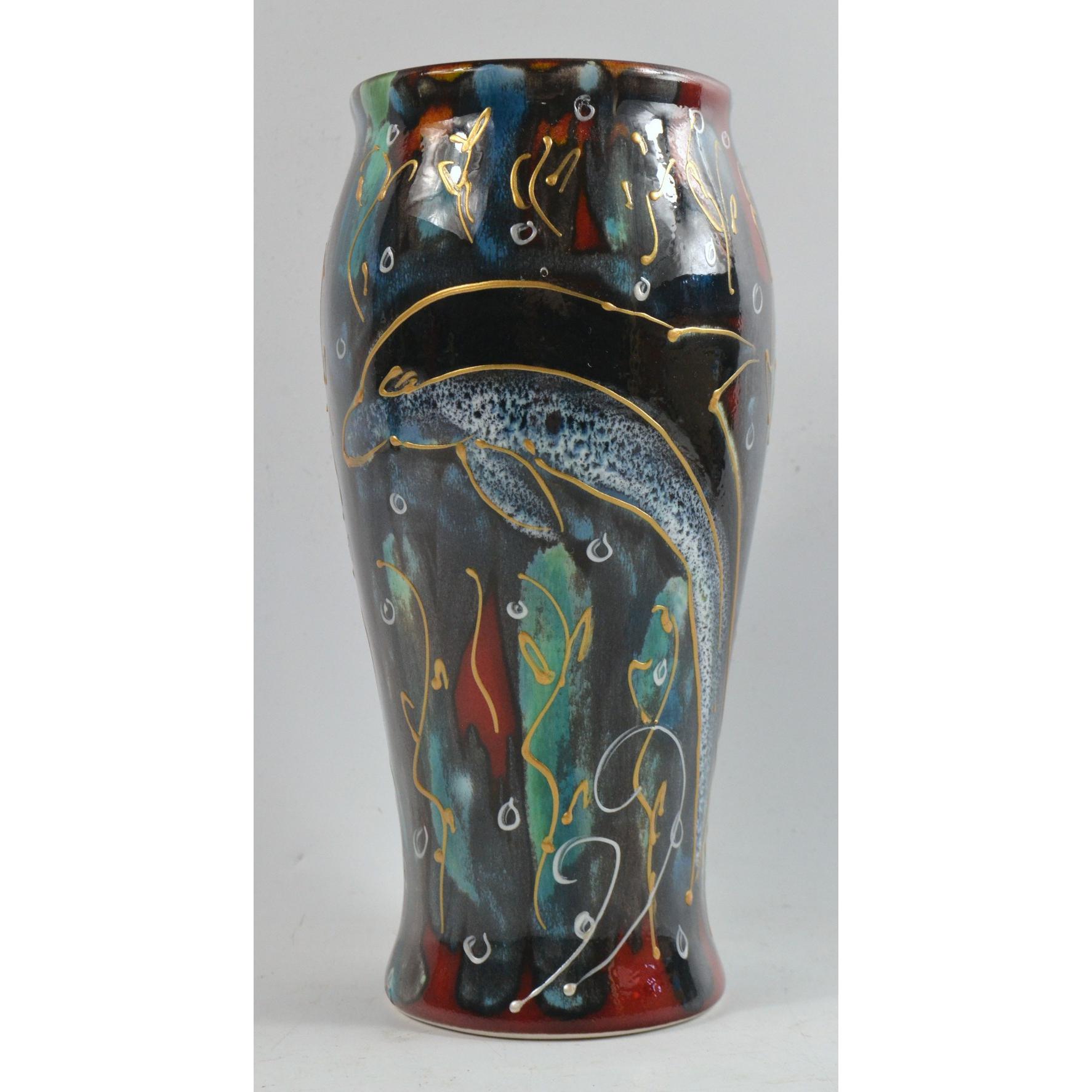 ANITA HARRIS ART POTTERY VASE "LEAPING DOLPHINS"