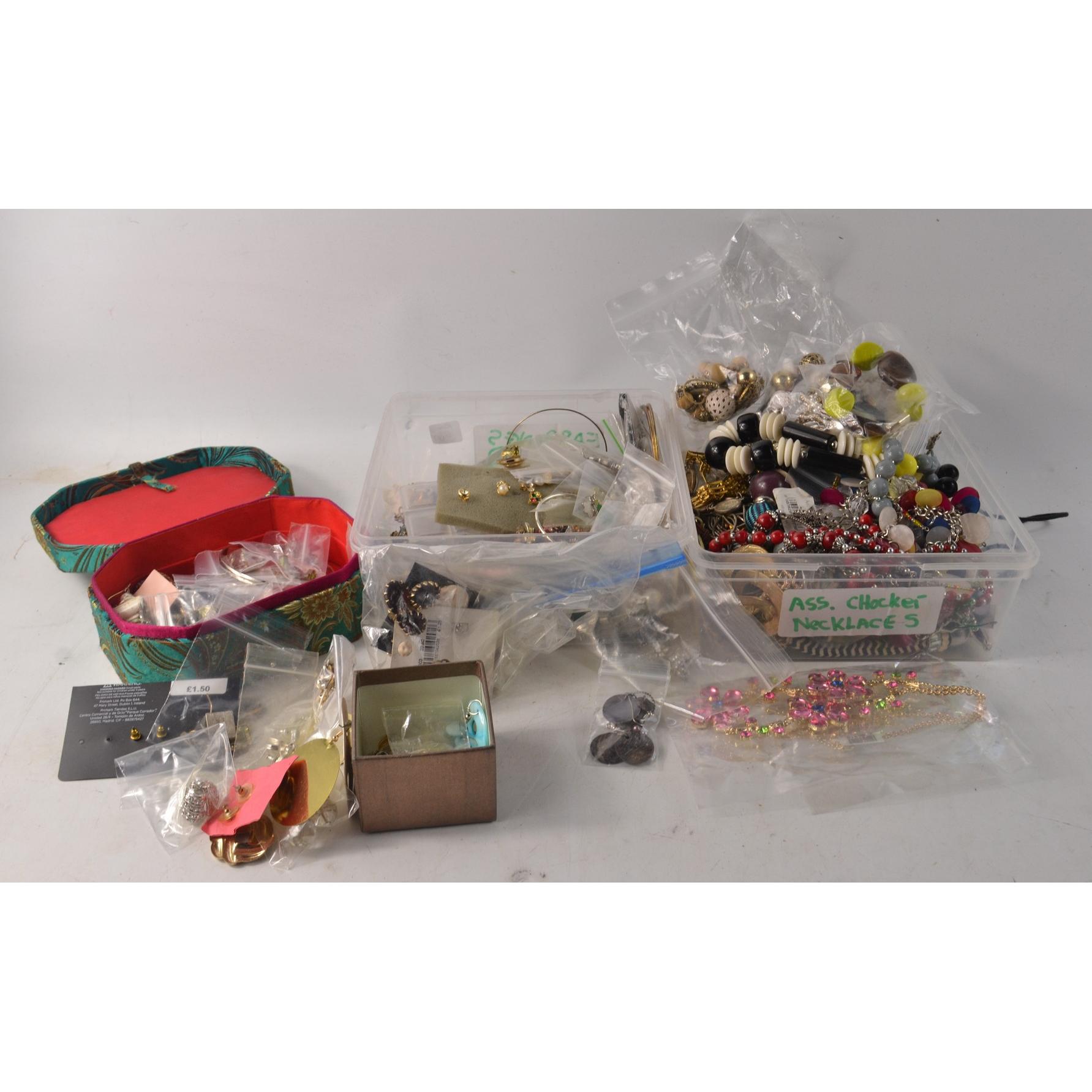 A large collection of costume jewellery, necklaces,some in original vintage jeweller's boxes.