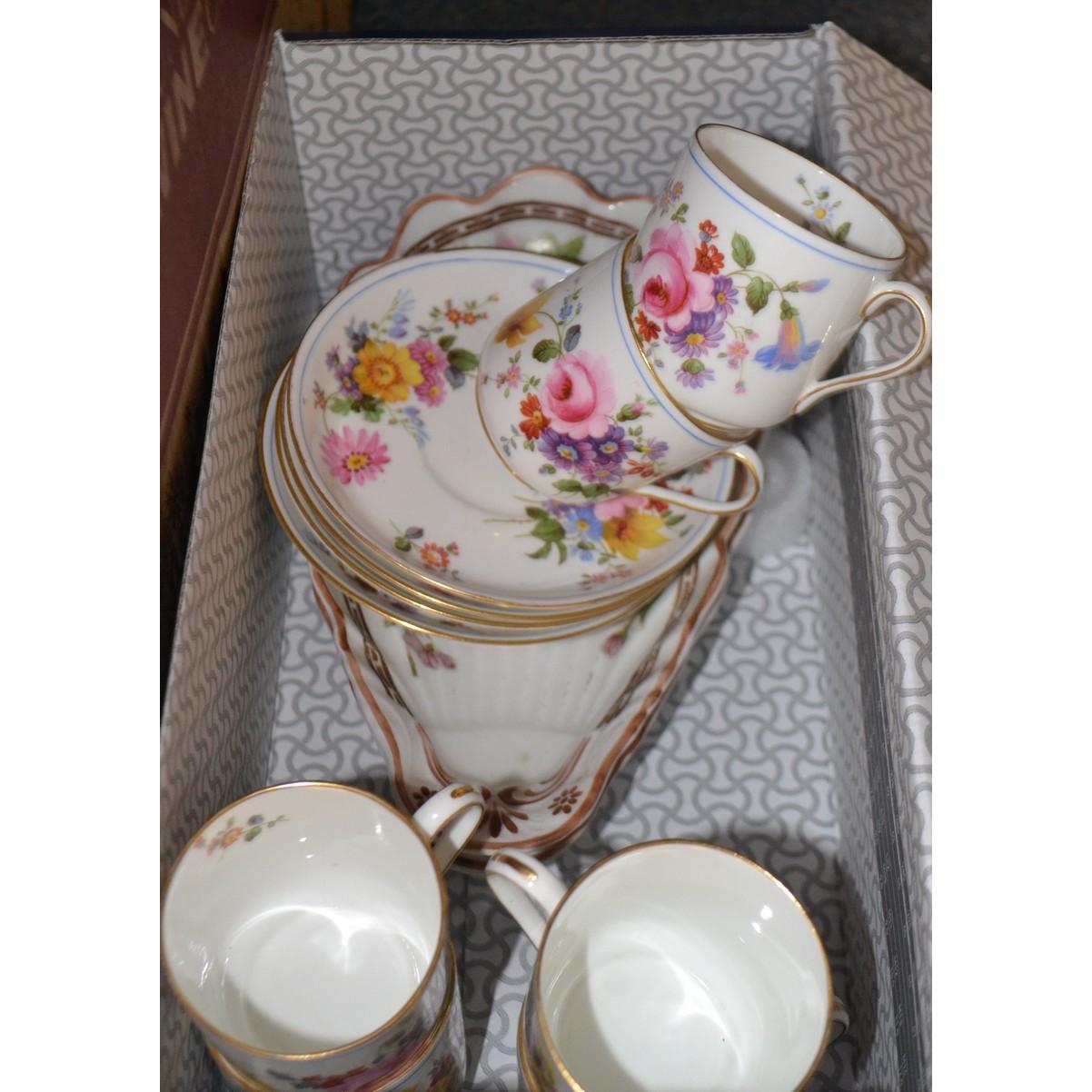 Royal Crown Derby coffee cans and saucers and a pair of Victorian dishes