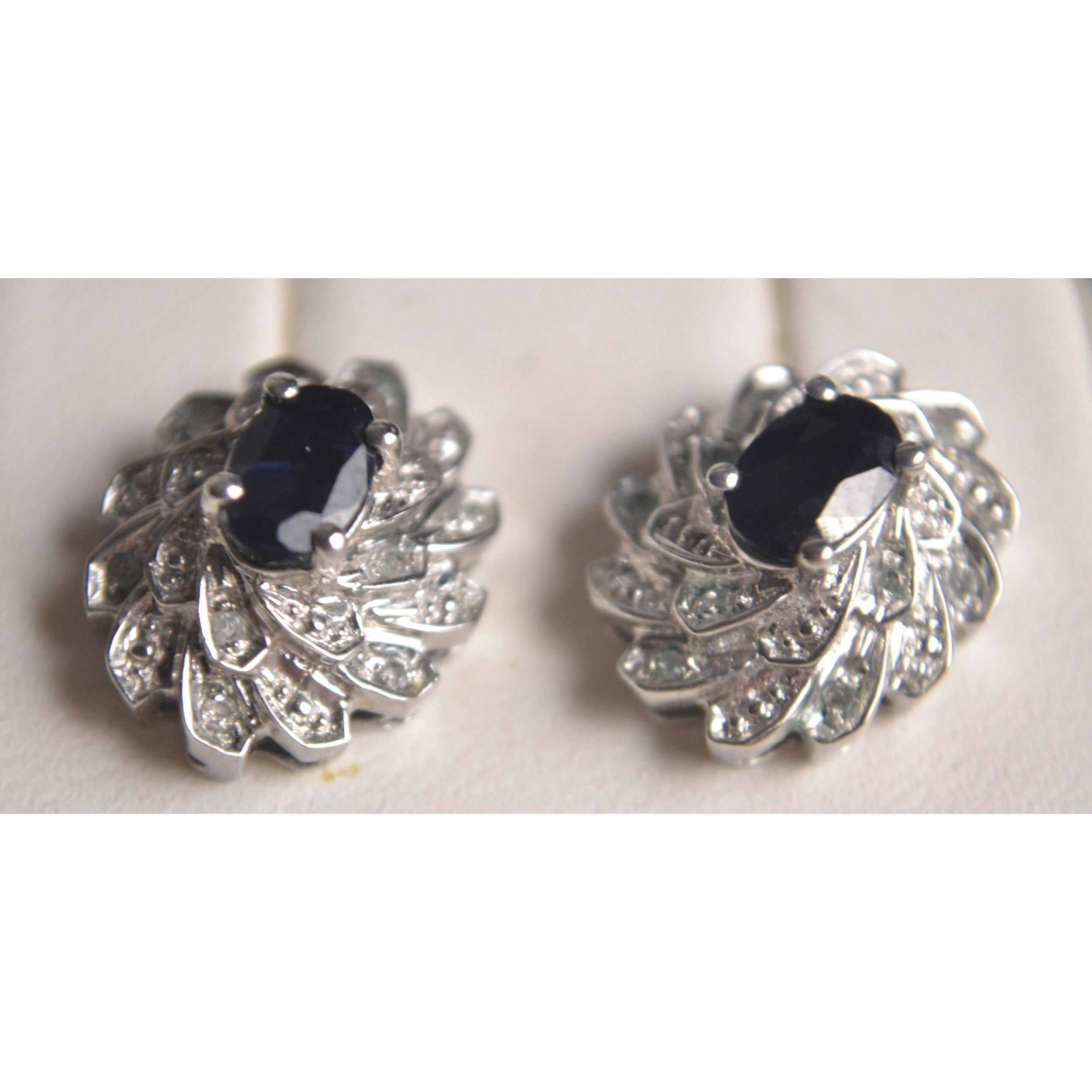 A pair of 375 stamped gold earrings set with 2 blue sapphires