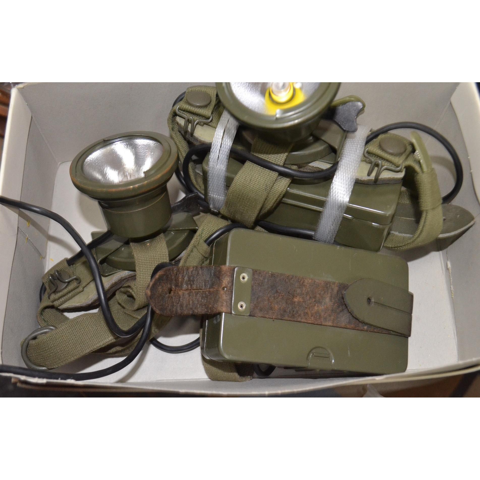 Two SWEDISH ARMY head torches and 2 battery packs.