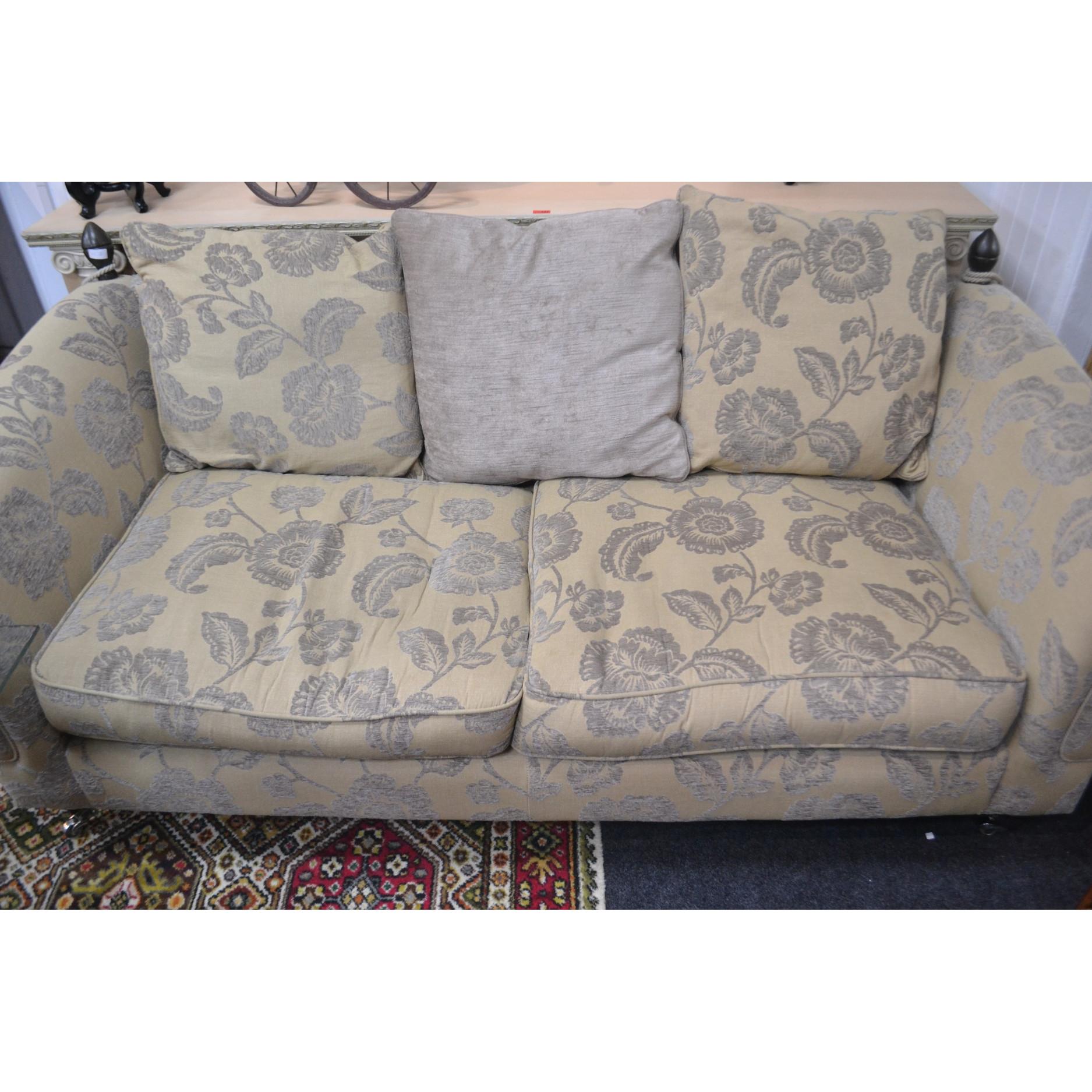 Large decorated floral jug/ vase with gold painted scrolled handle