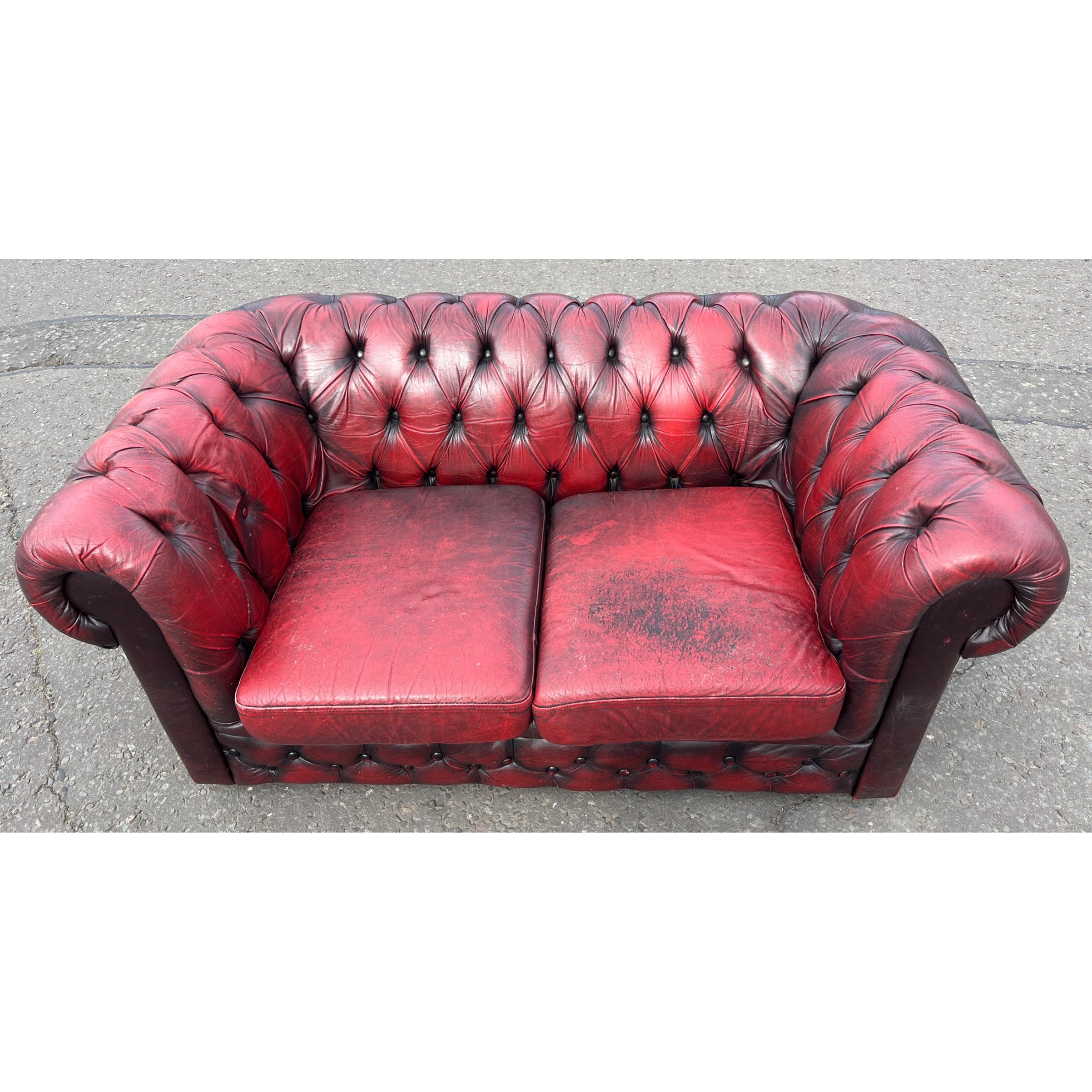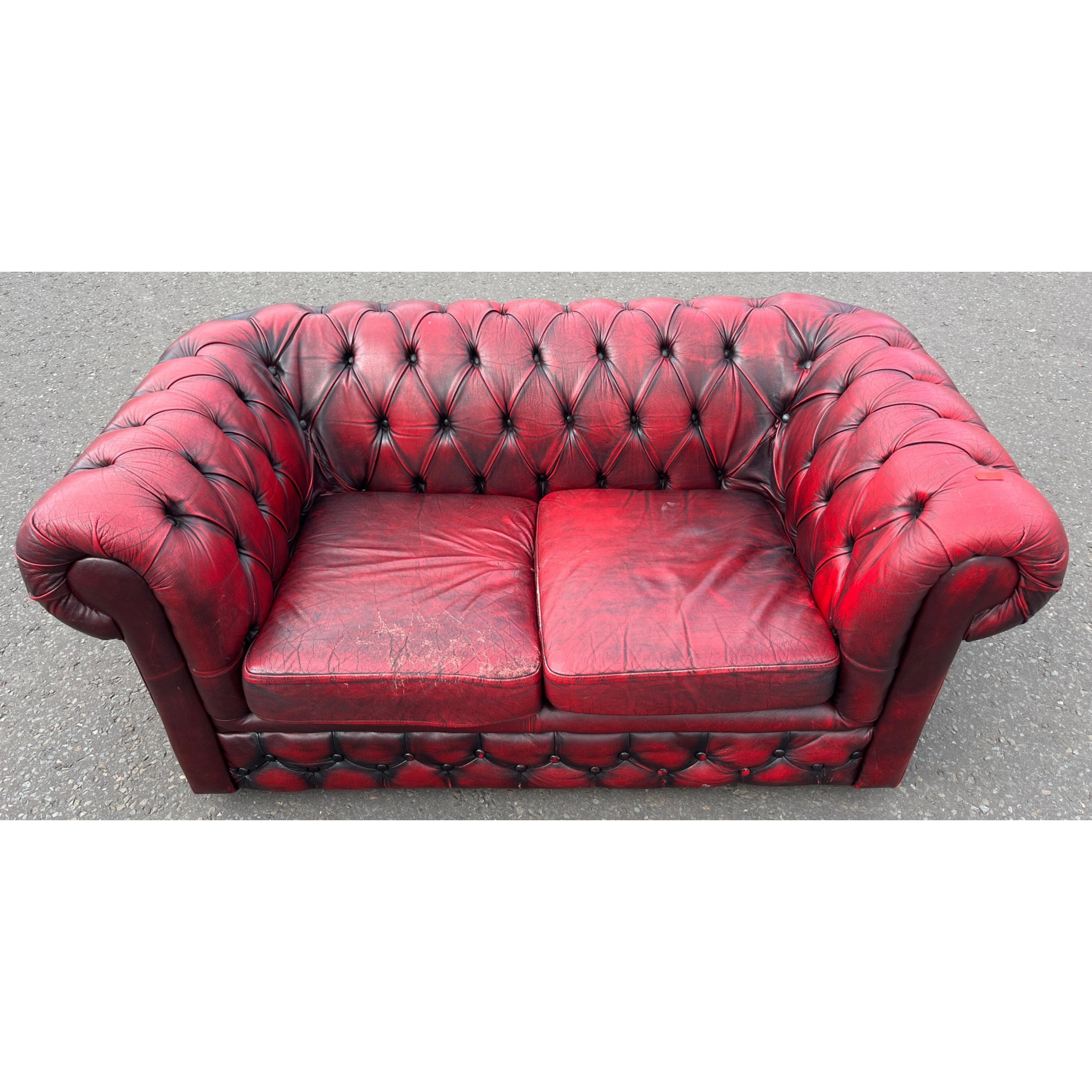 FABULOUS! red leather effect CHESTERFIELD couch 2 seater (matching 3 and 2 seater(s) Chesterfields in subsequent lots)