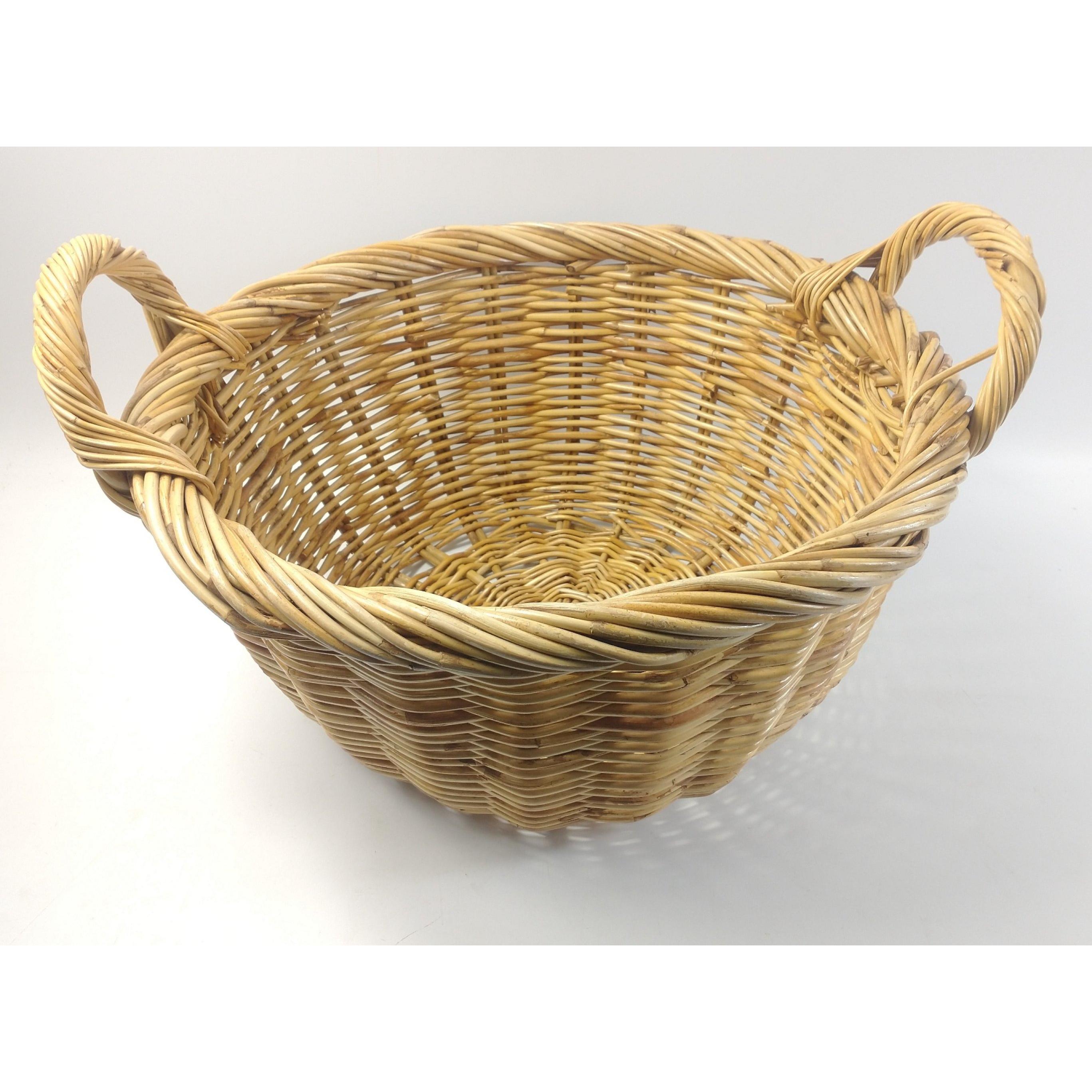 A twin-handled wicker basket ideal for children's toys, laundry, wood etc, 45cm dia approx, height 23cm approx