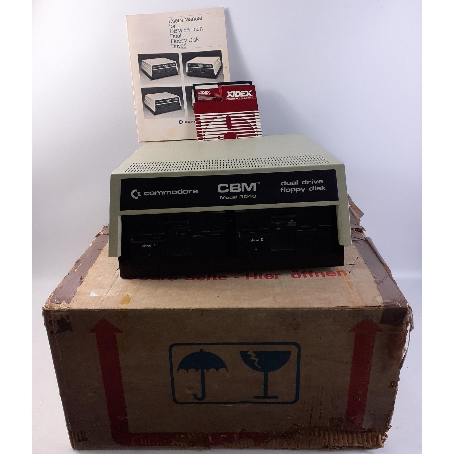 A blast from the past - a CBM 51/4 inch dual floppy disk drives COMMODORE COMPUTER model 3040, boxed complete with instruction manual,