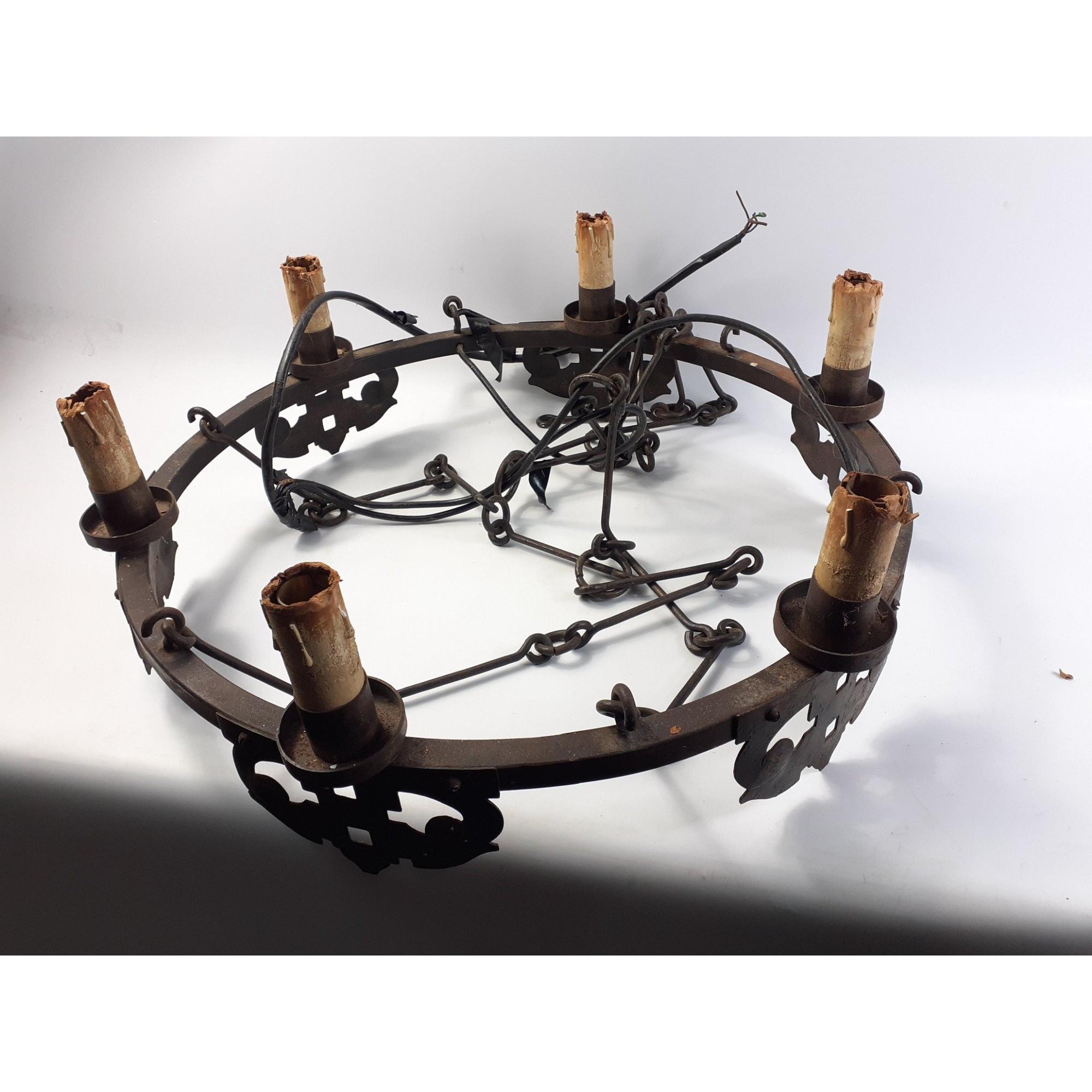 A large gothic metal ceiling light fitting with space for 6 bulbs, 55cm dia