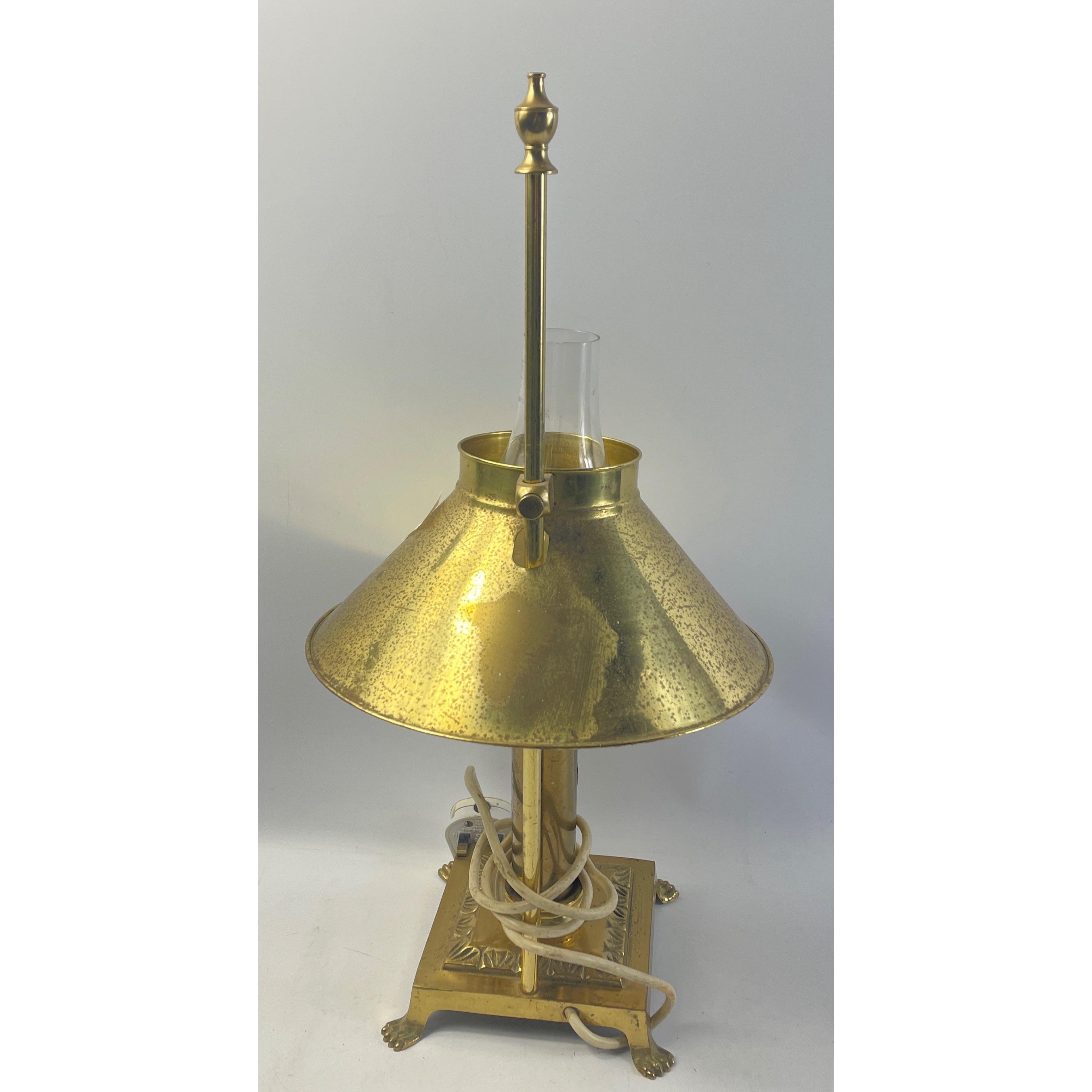 A vintage electric ORIENT EXPRESS claw foot replica table lamp with adjustable height shade, with label 'Paris Istanbul Orient Express' stands approx 50cm high
