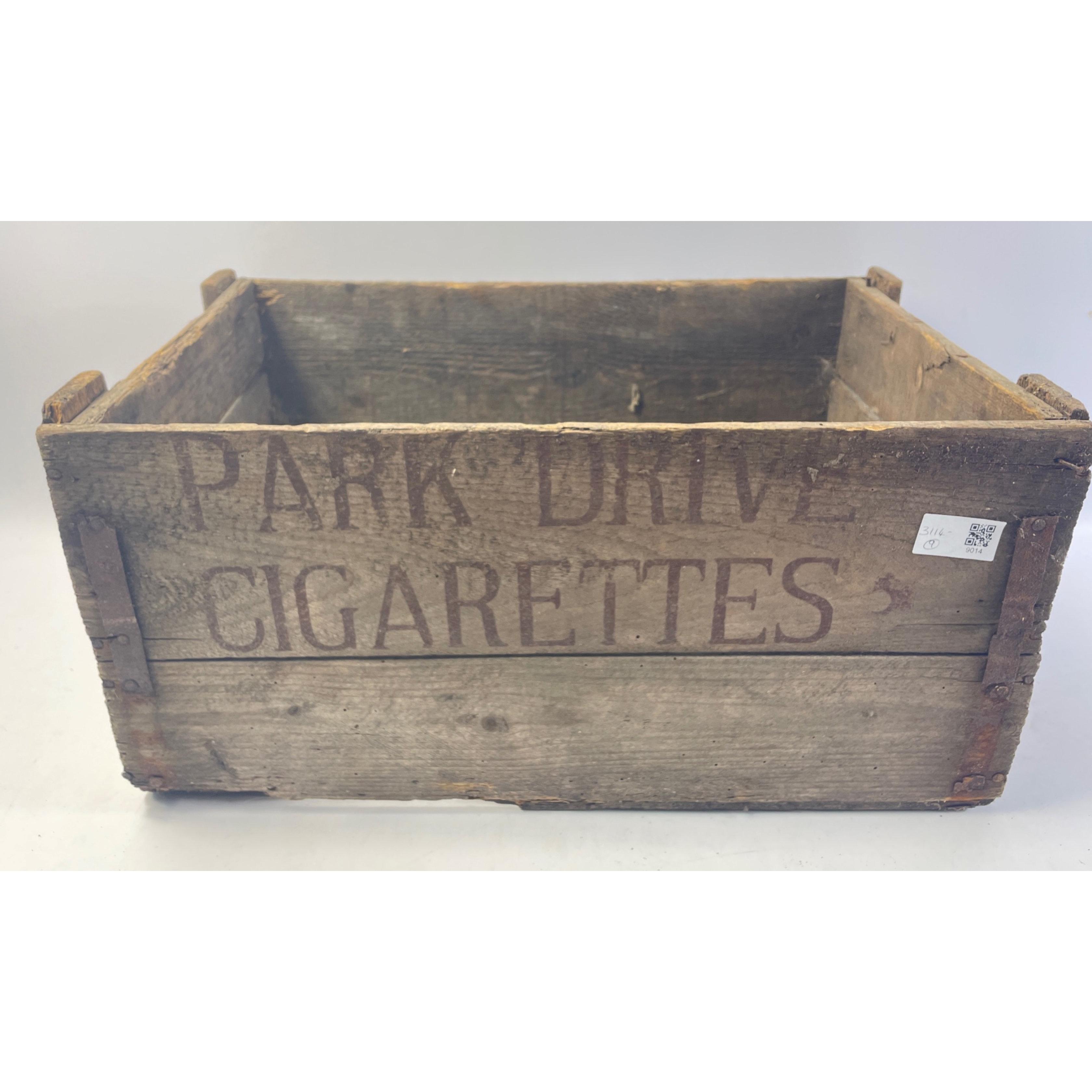 An old wooden collectable Park Drive cigarette box (some woodworm but treatable) measures 45x28x22cm approx