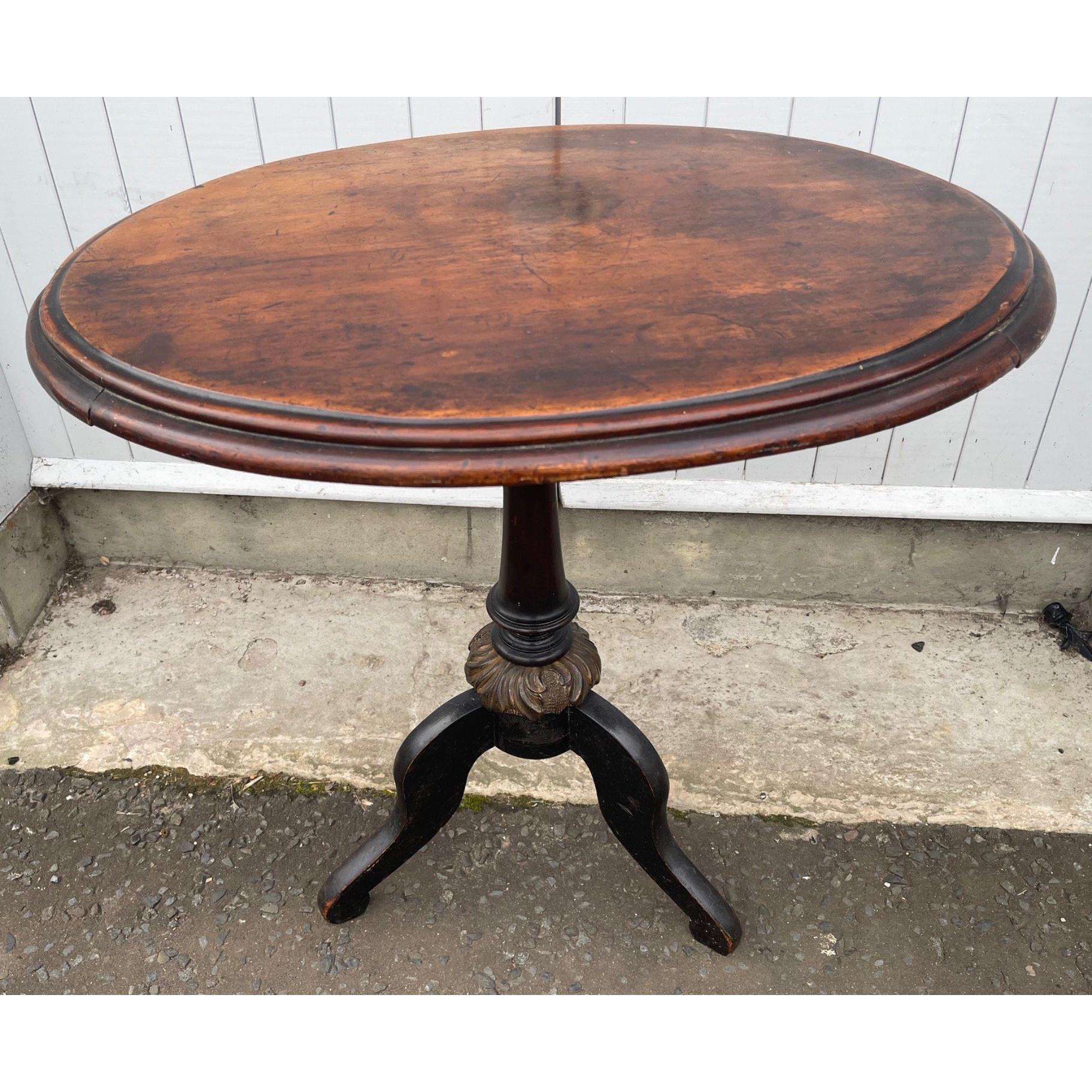 A nice VICTORIAN oval-topped occasional table supported on tripod leg supports with nice features - dimensions height 72cm x 70cm across x depth 52cm approx - a nice aged patina with this table