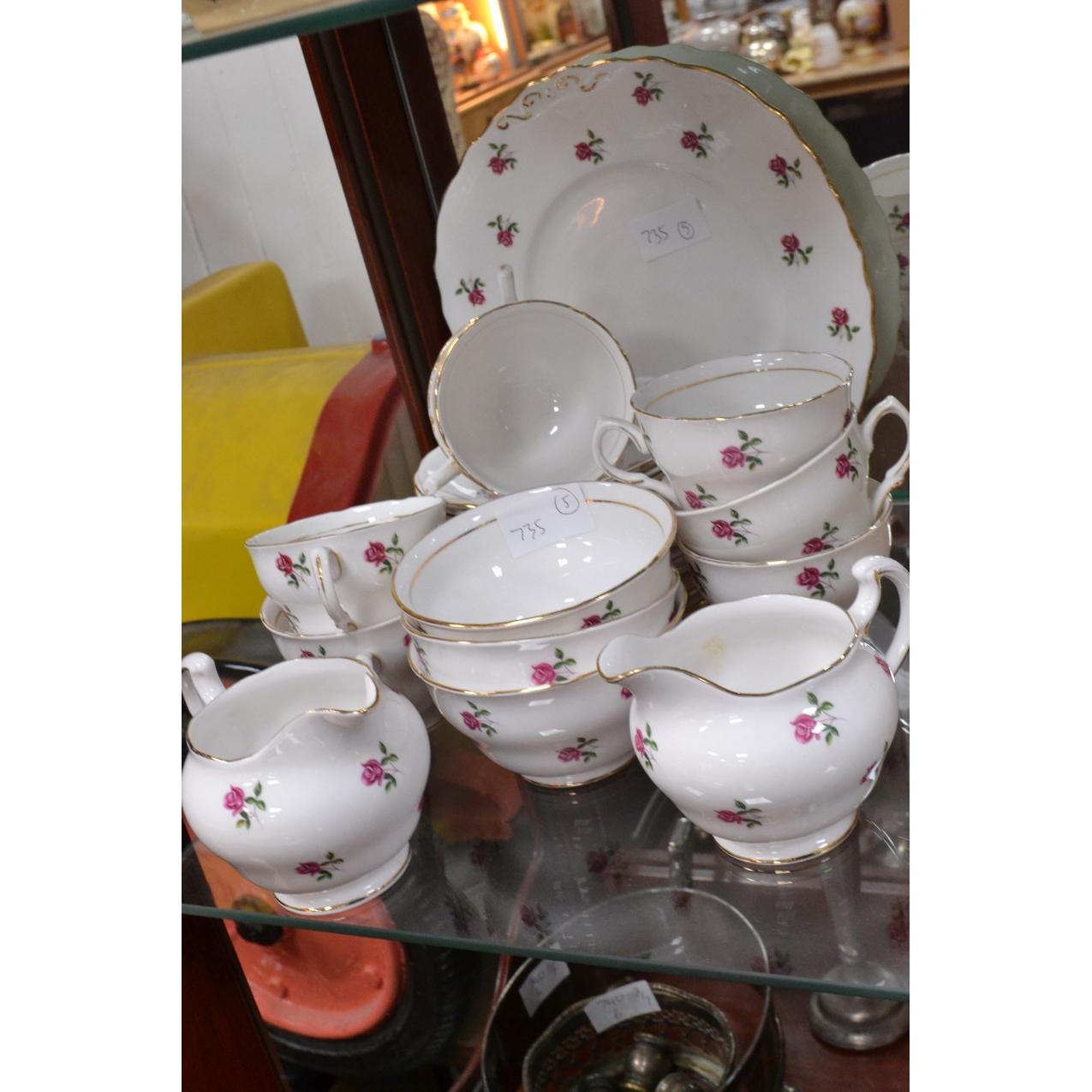 A COLCLOUGH 7 cup part teaset pat No 7433 roses design with 2 milk jugs, 3 sugar bowls, large sandwich plate etc, all in good condition