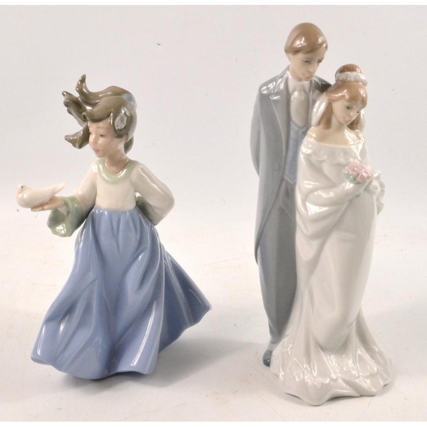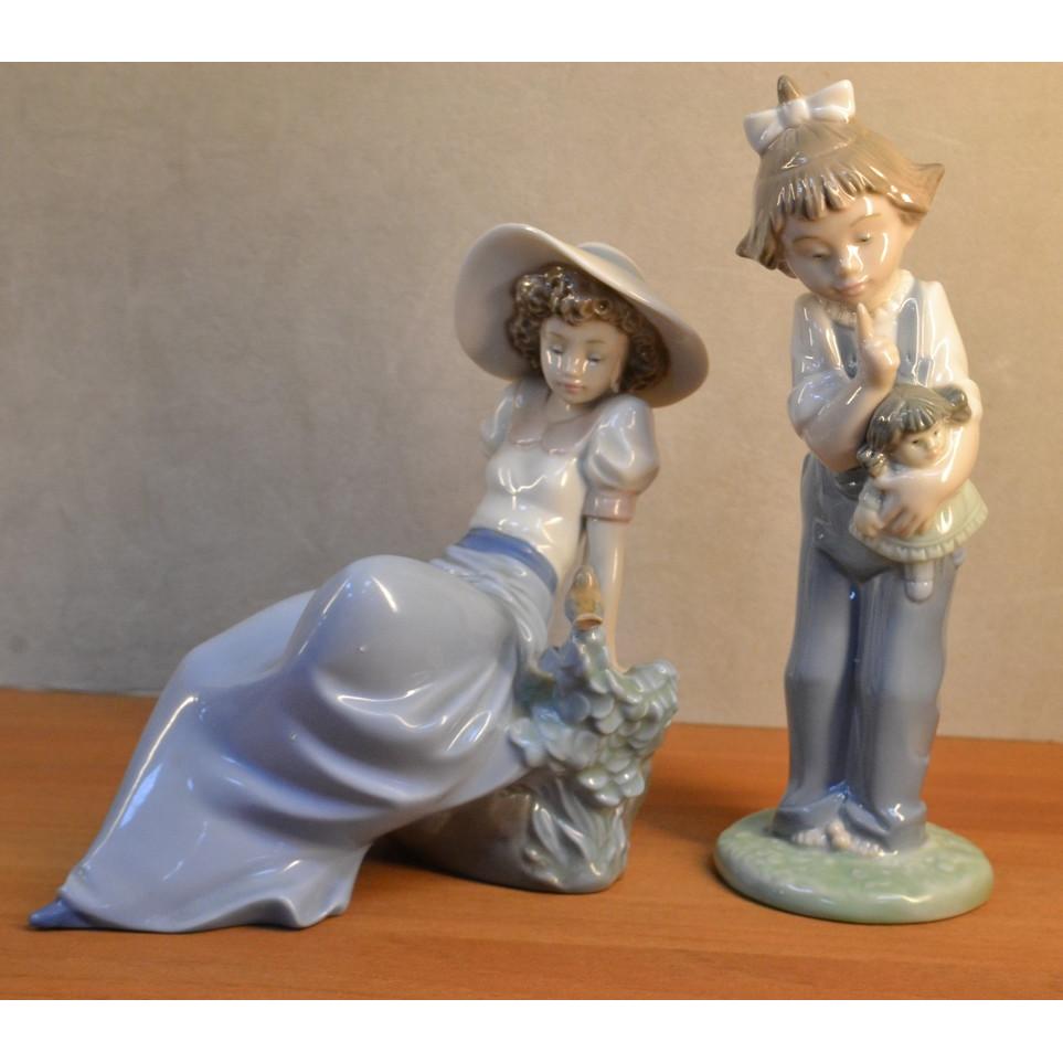 2 NAO porcelaine figures, resting girl, and young girl with a dolly ssshh ! max height larger figurine 19cm