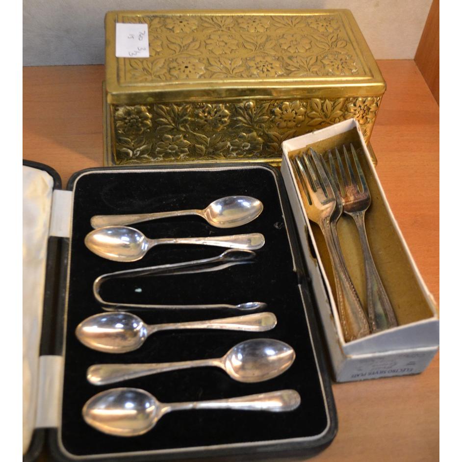 Selection of EP and silverware to include Chester silver 1912 (Maker possibly WB? well rubbed), EP coaster holder etc (7)