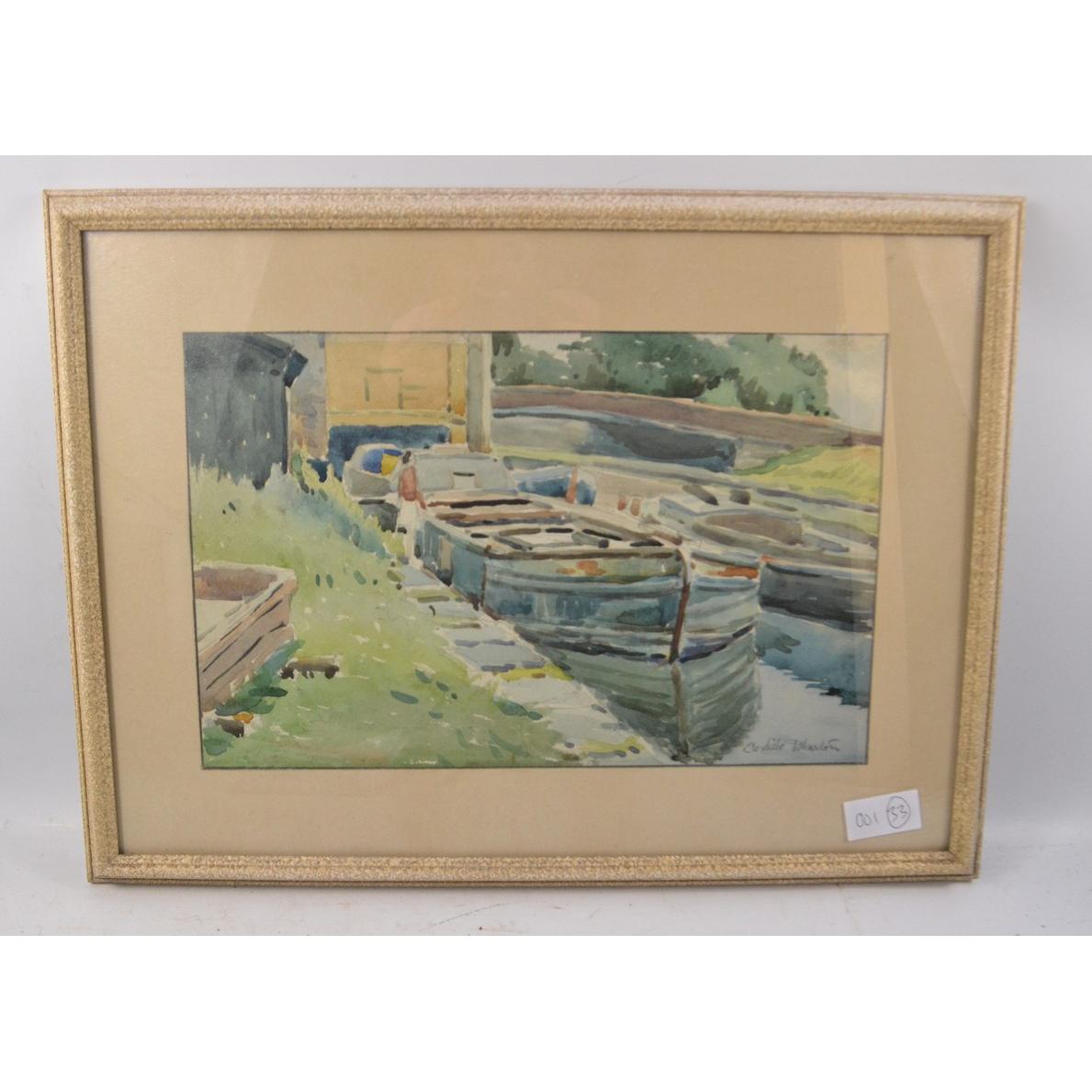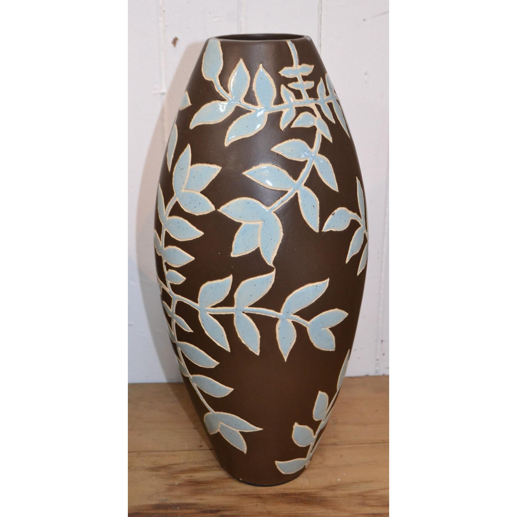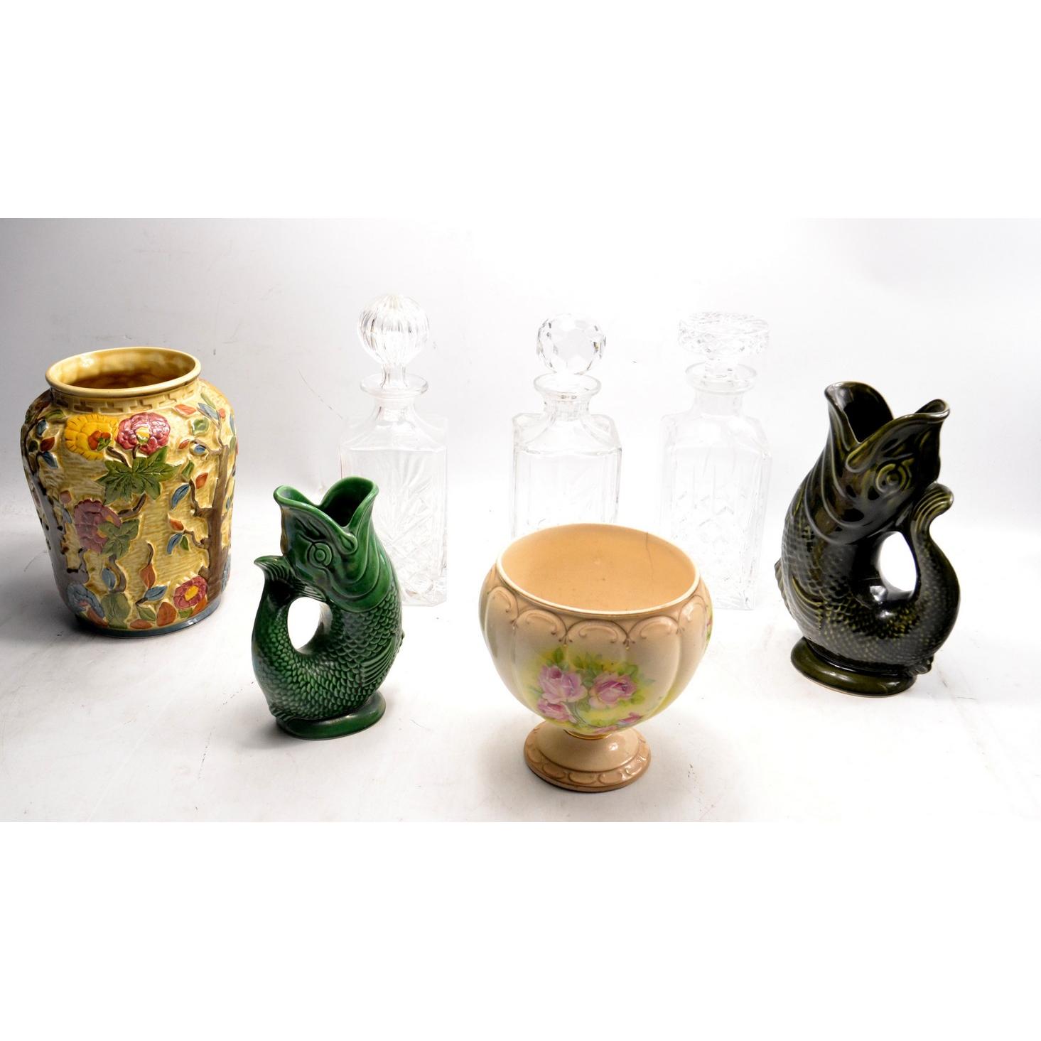 A small studio made pottery pot blue based signed to base with sturgeon fish decorating the outside