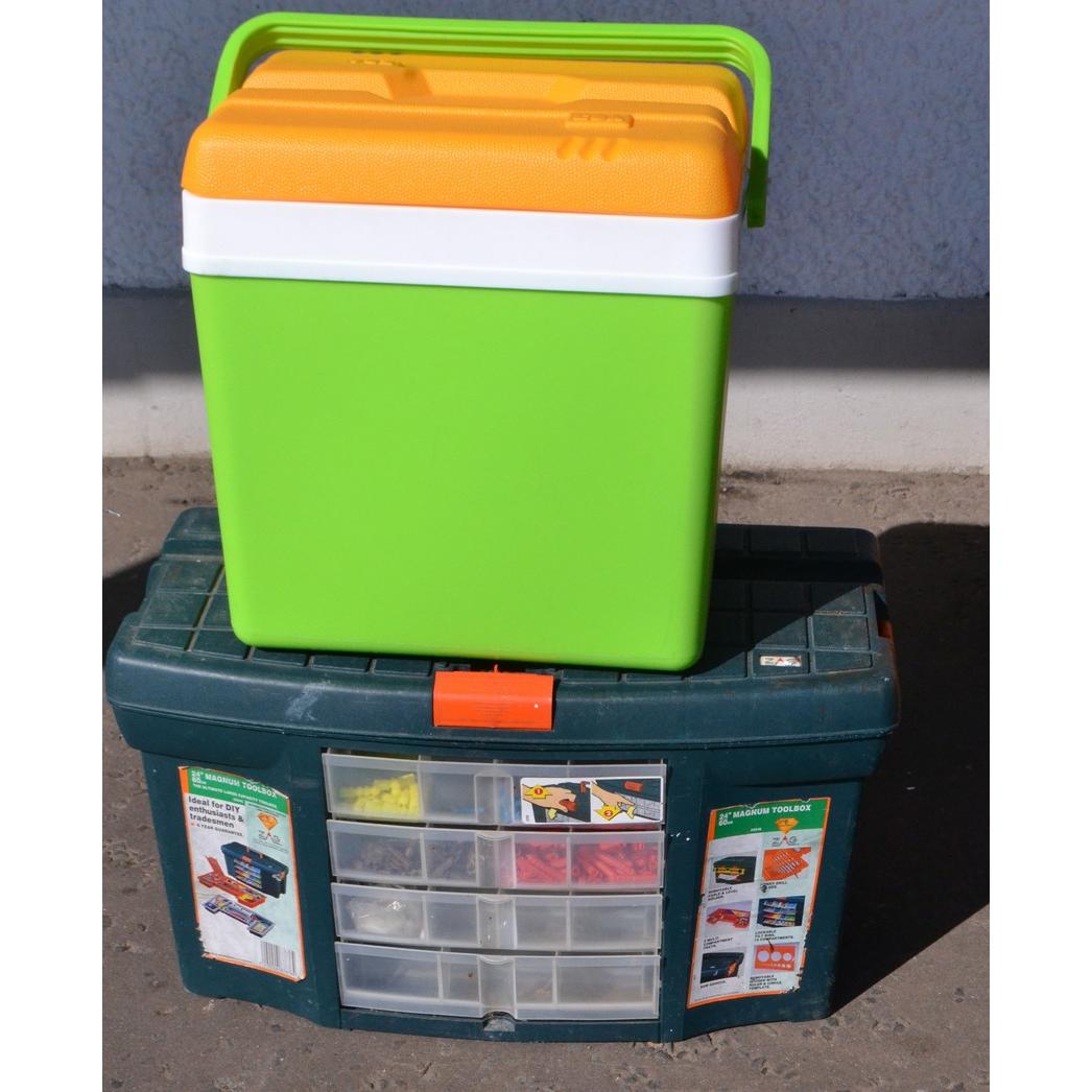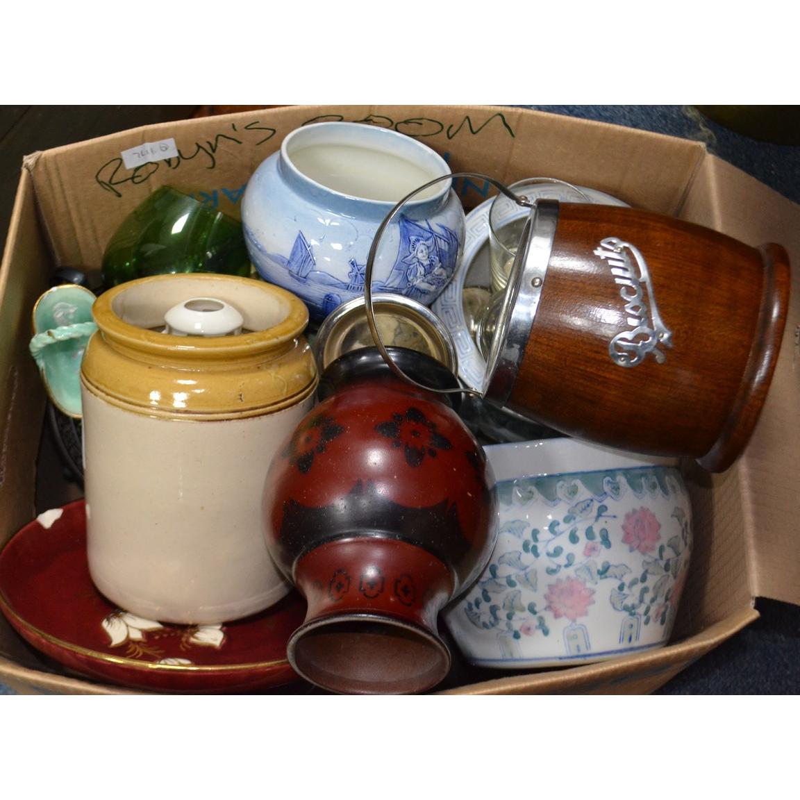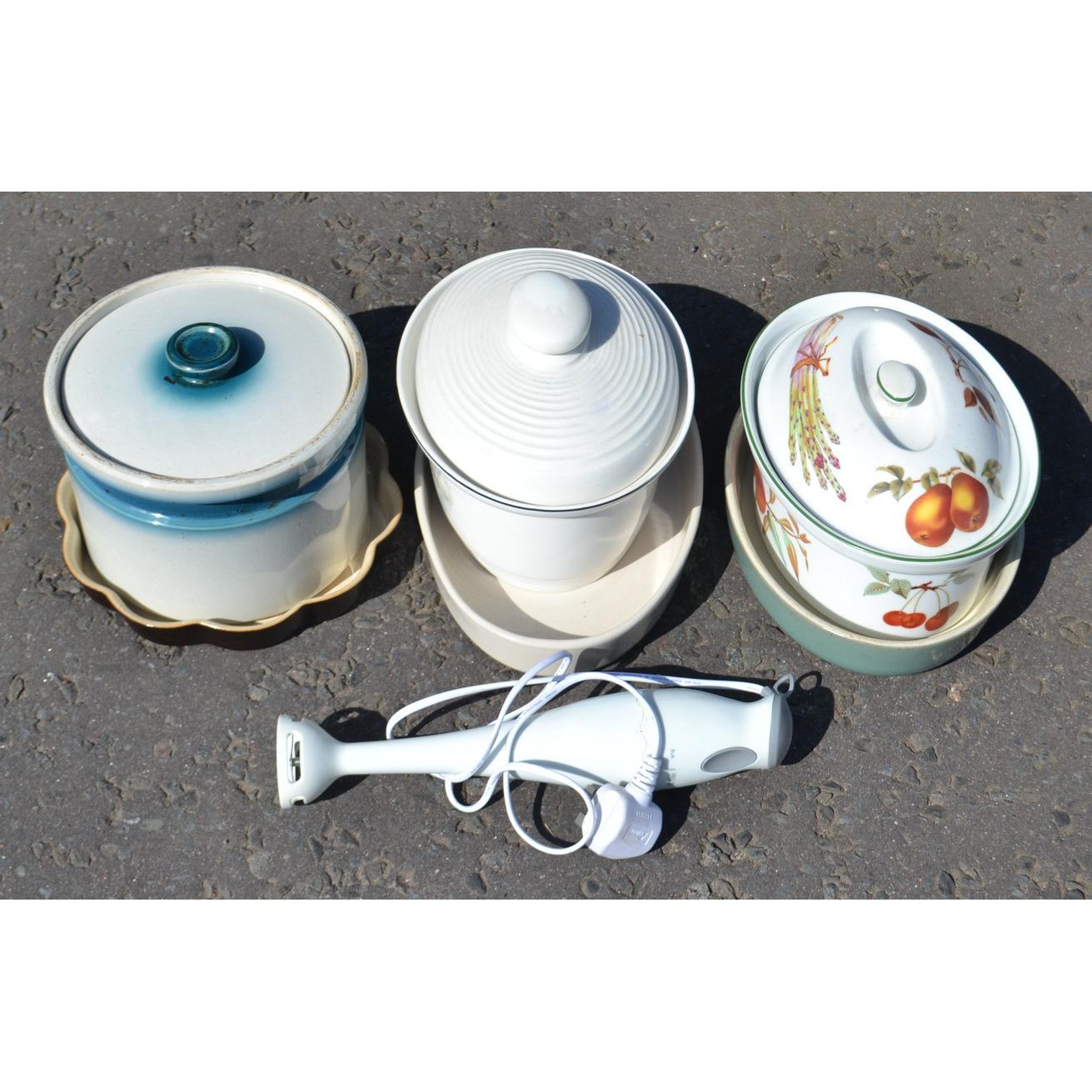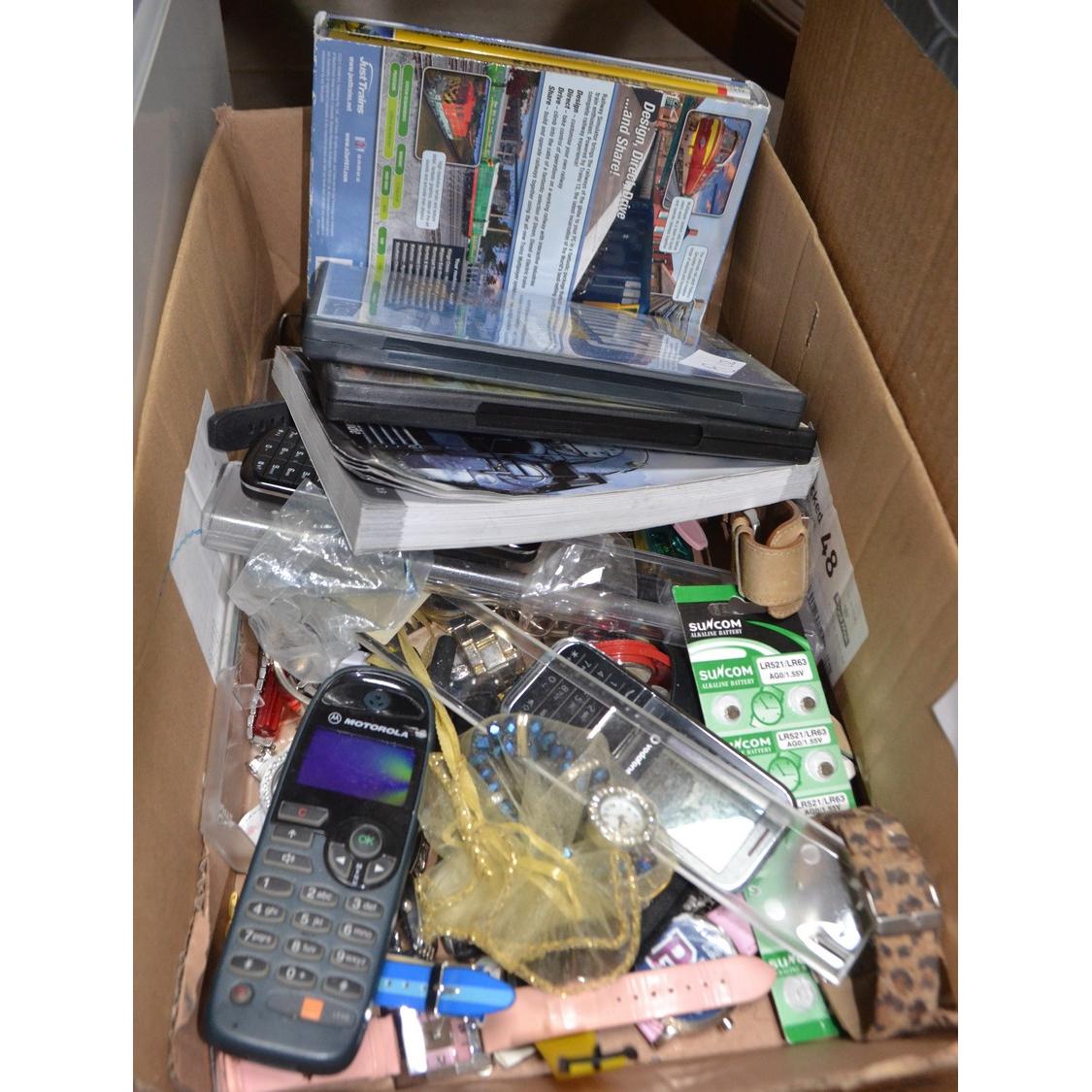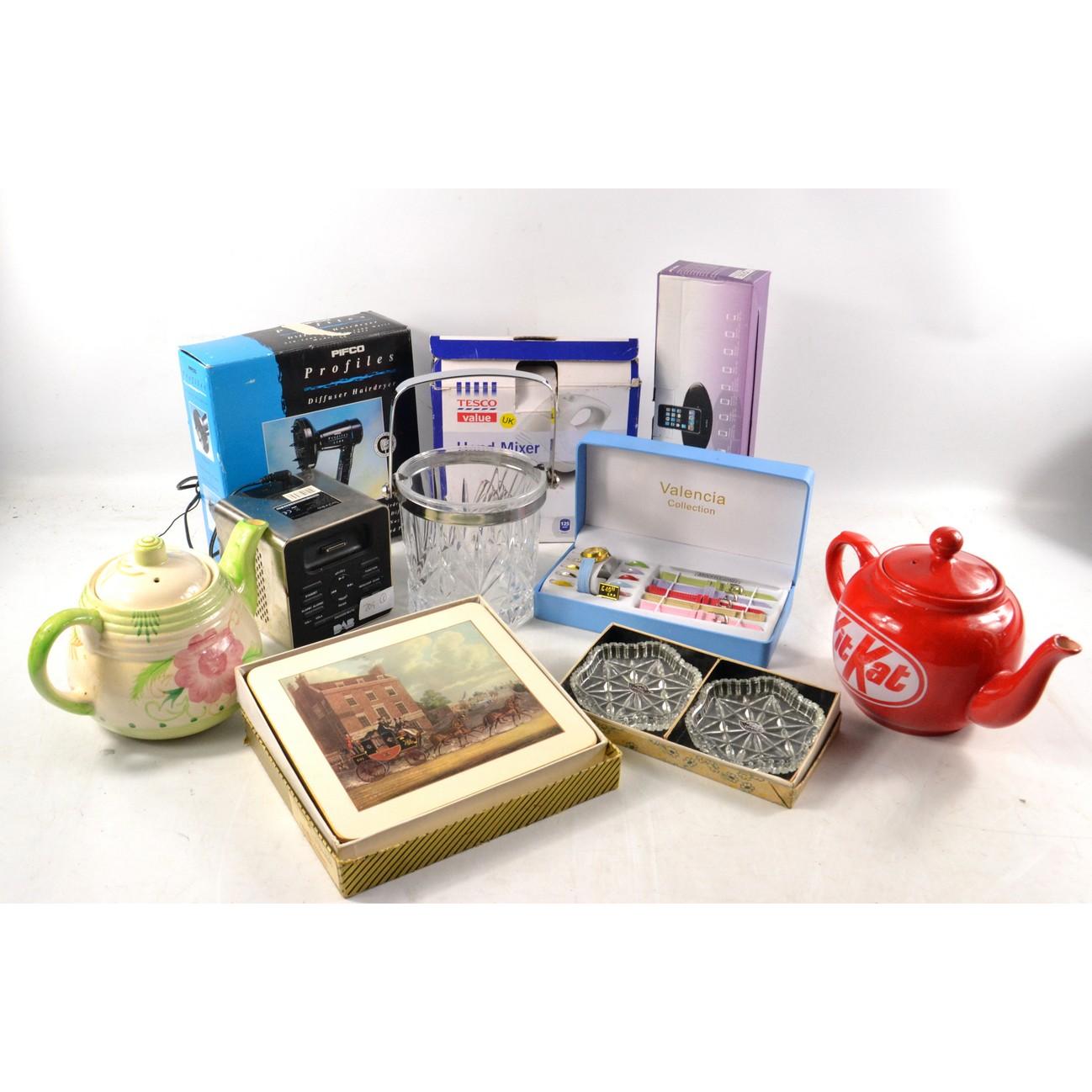 A mixed box to contain teapots, a DAB radio, small Tesco mixer, PIFCO hairdryer etc etc