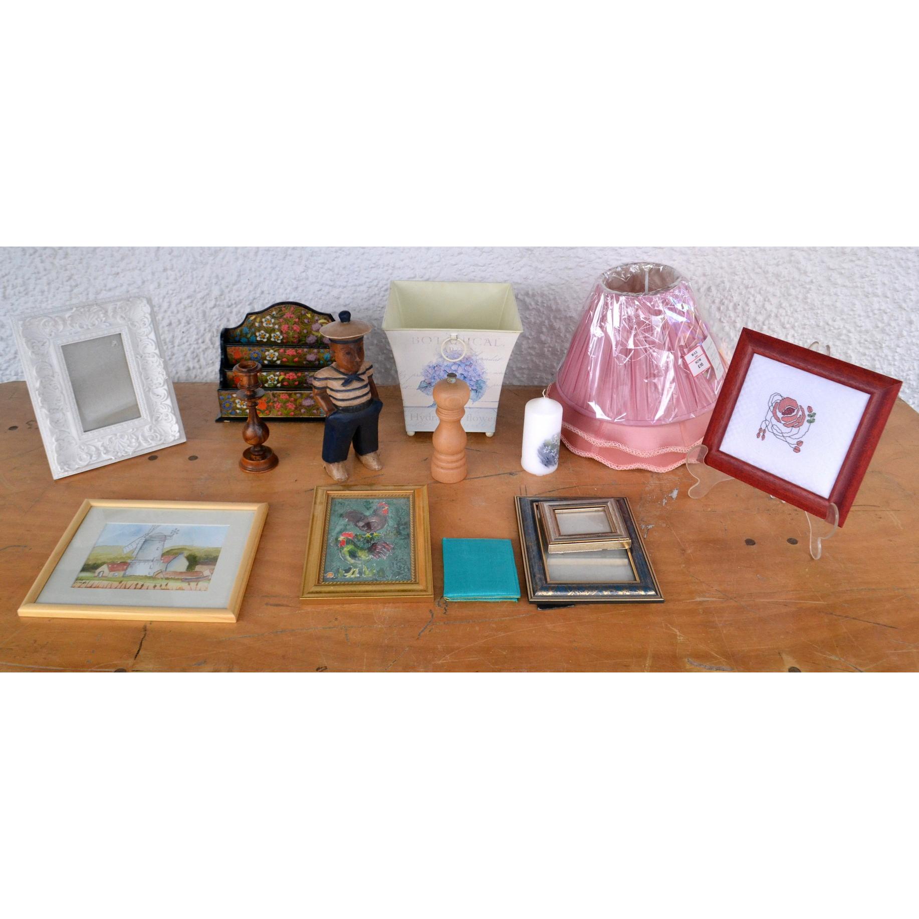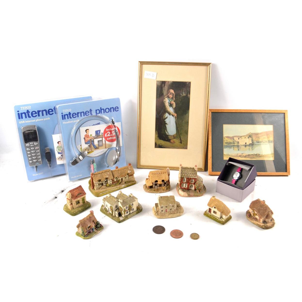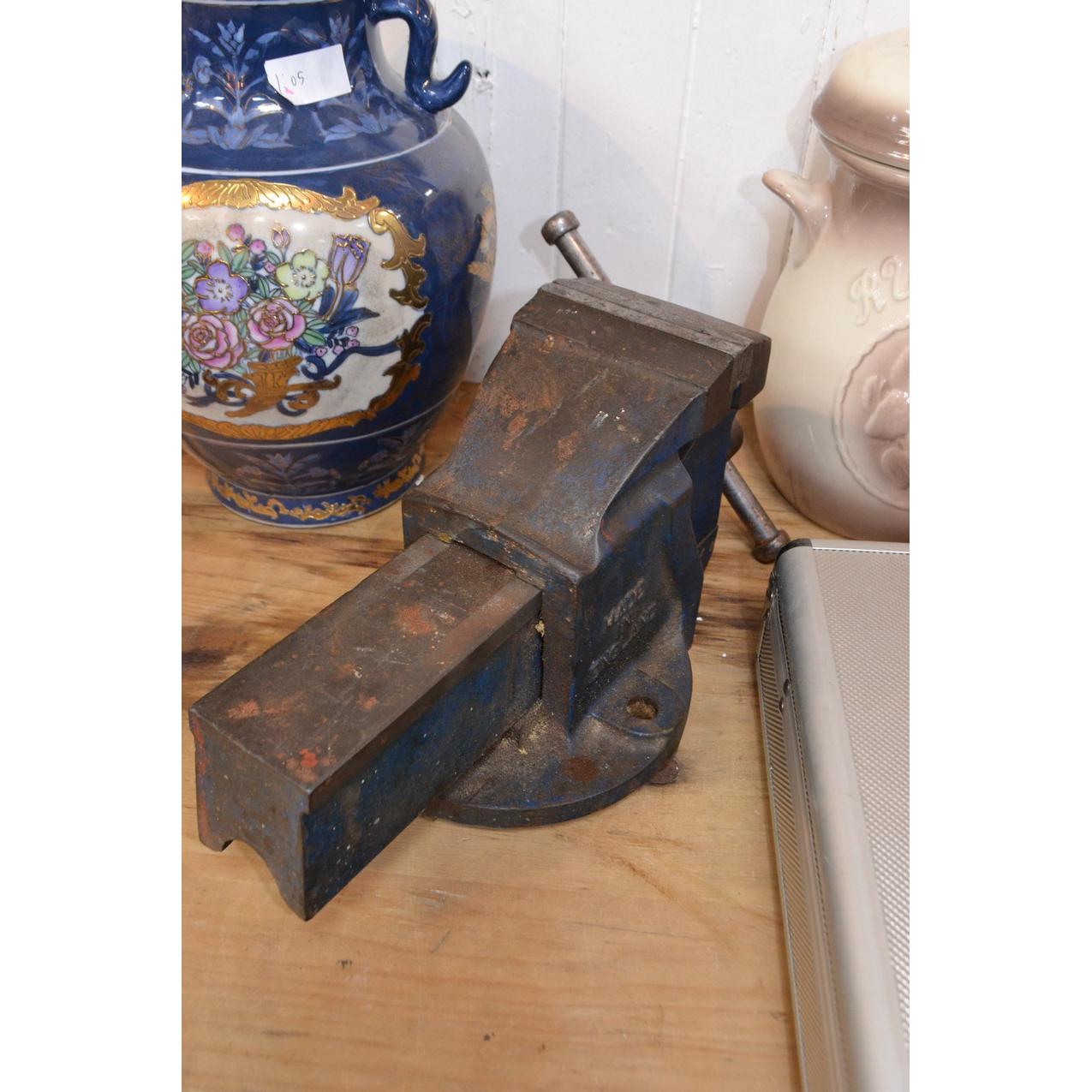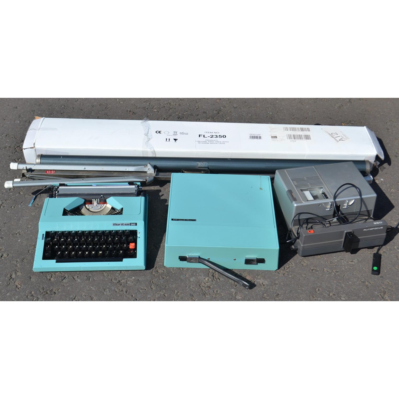 Old Queen Anne furniture legs and a box to include an angle poise desk lamp, bulkhead light etc