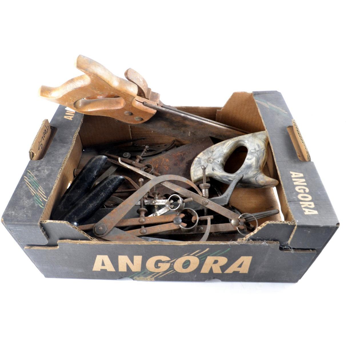 Box of very vintage tools to include rasps and small hand saws etc etc