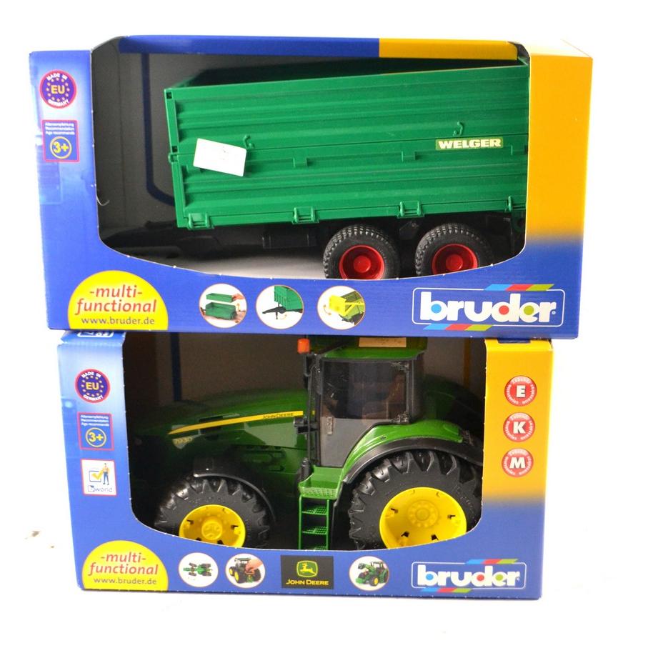 BRUDER toy John Deere 7930 1:16 tractor with matching trailer