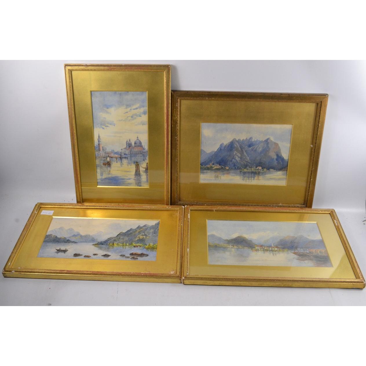 Selection of 4 Royal Doulton Kate Greenway designed figures with display stand