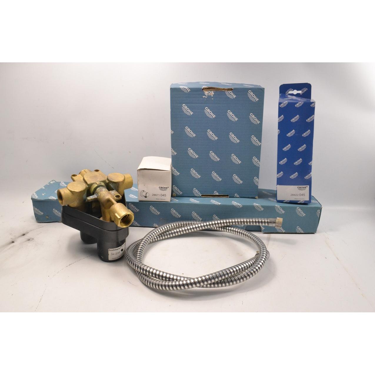 A box of mixed Religious items to include crosses, small Communion glasses etc etc