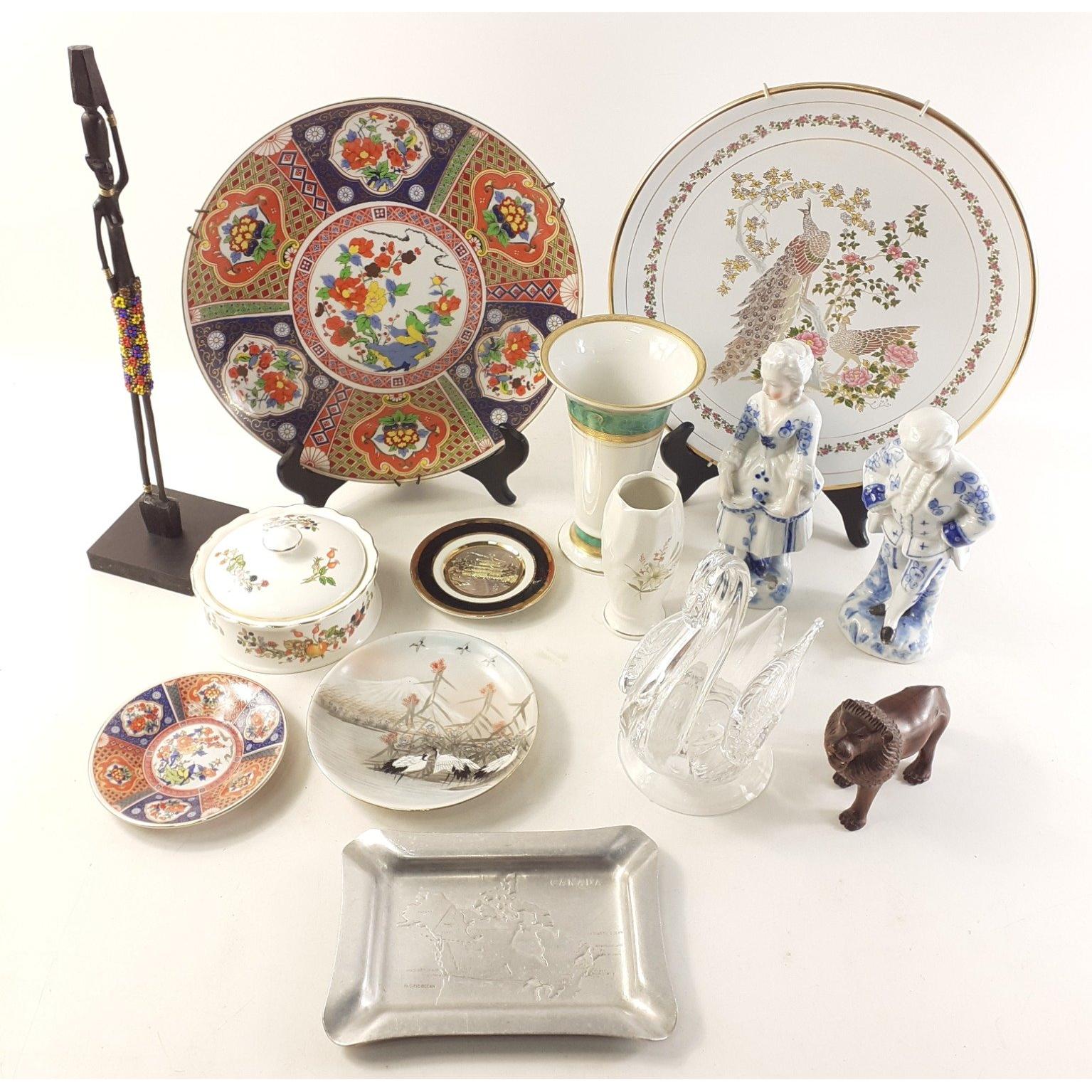 Mixed lot of pretty decorative items to include plates, ornamental figures, flower vase, glass swan