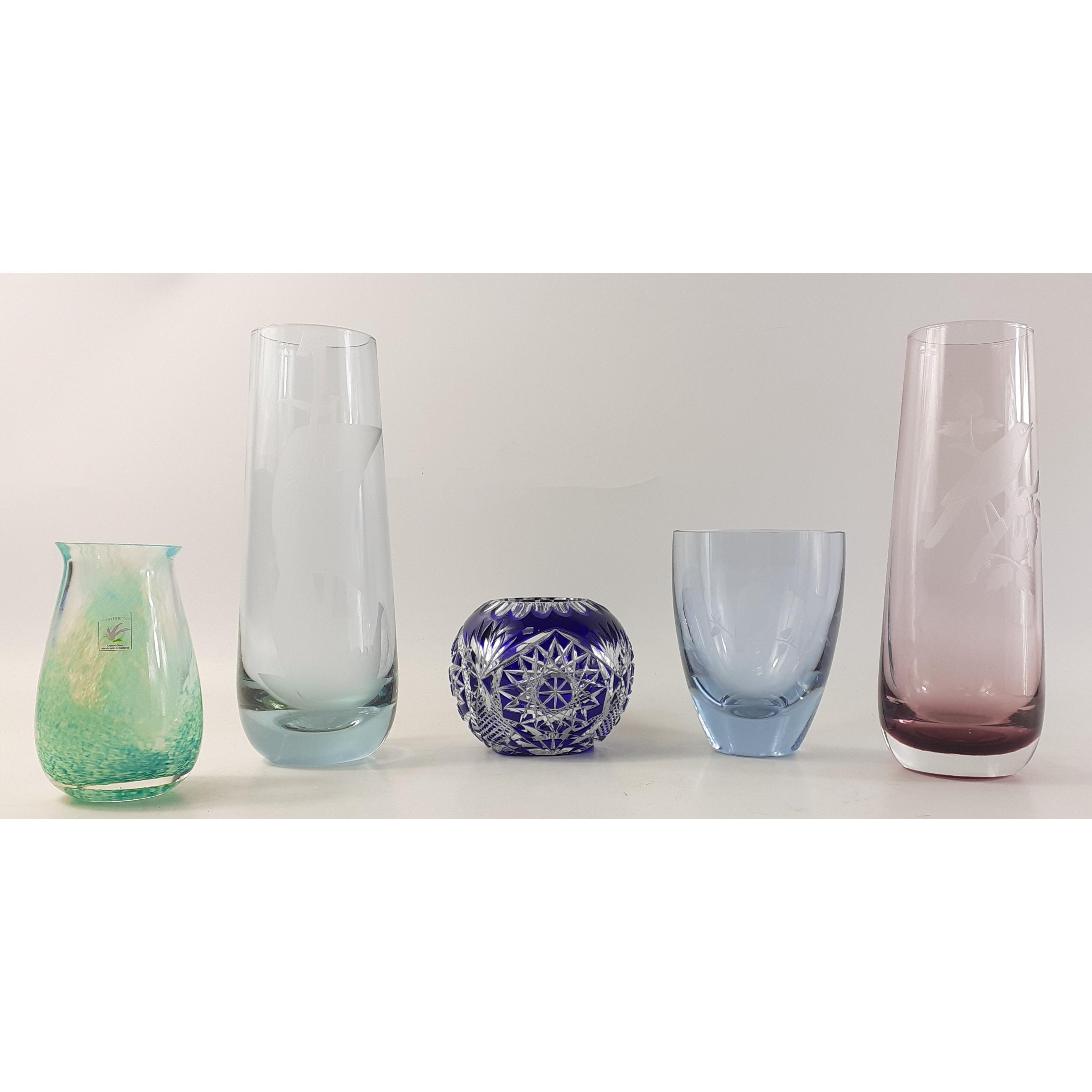 A mixed lot of decorative items to include blue glass EP dishes, two lovely bottle stoppers, red vase, Oriental style pots and others