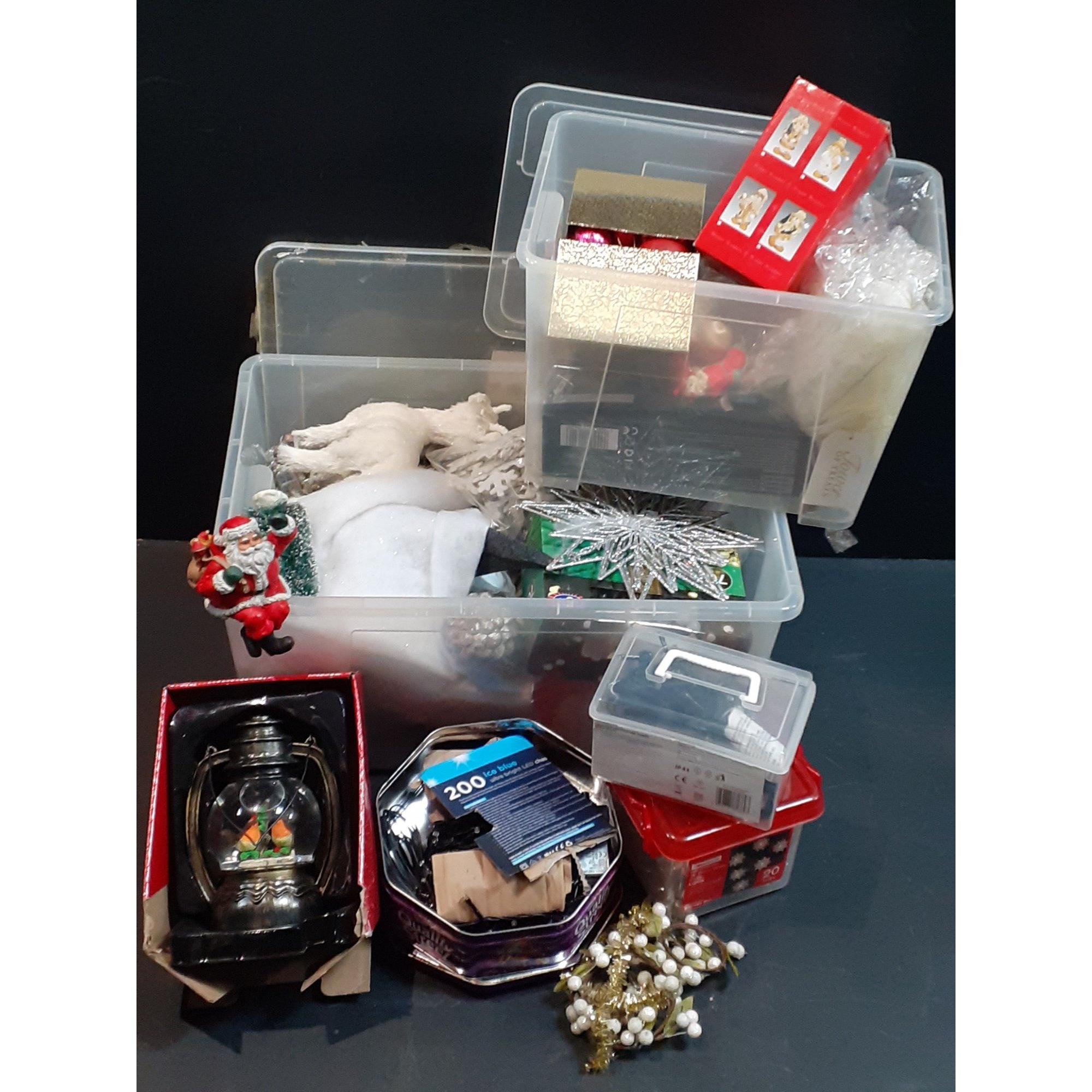 GET READY FOR SANTA Three boxes stuffed full of CHRISTMAS decorations, lights, baubles, and lots of small decorations