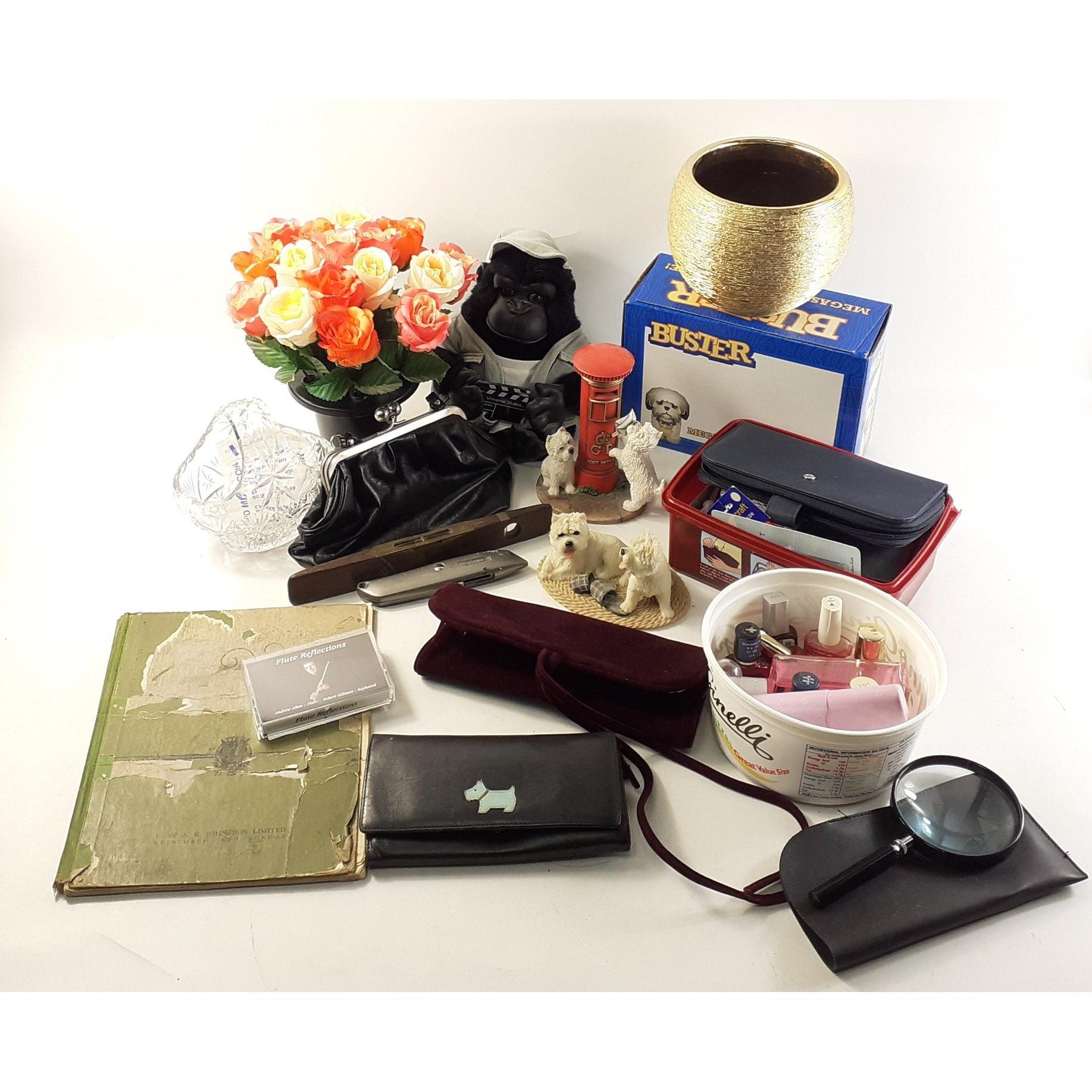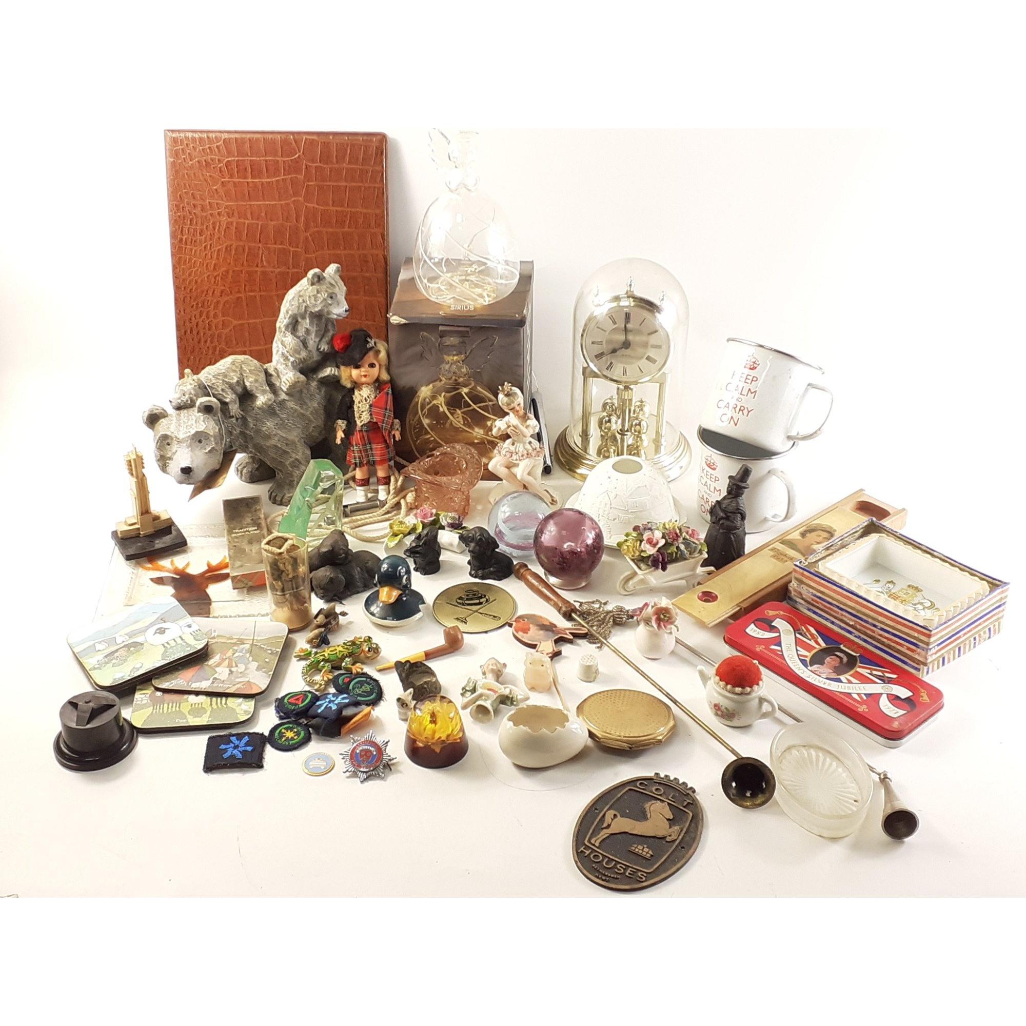 Mixed lot to include animal ornaments, a Sirius decorative light jar, skeleton clock and much more.