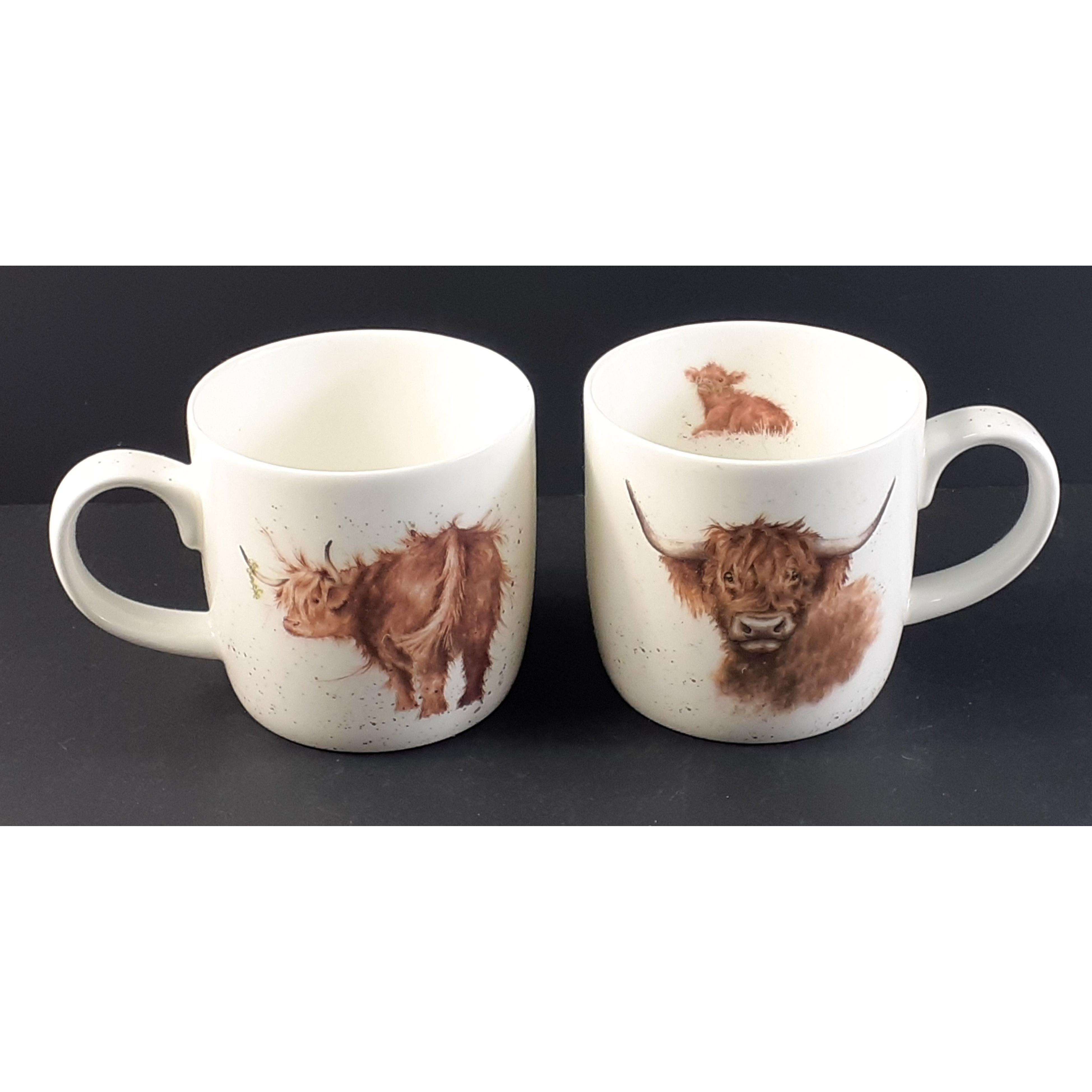 A pair of ROYAL WORCESTER Wrendale Design HIGHLAND COO mugs.