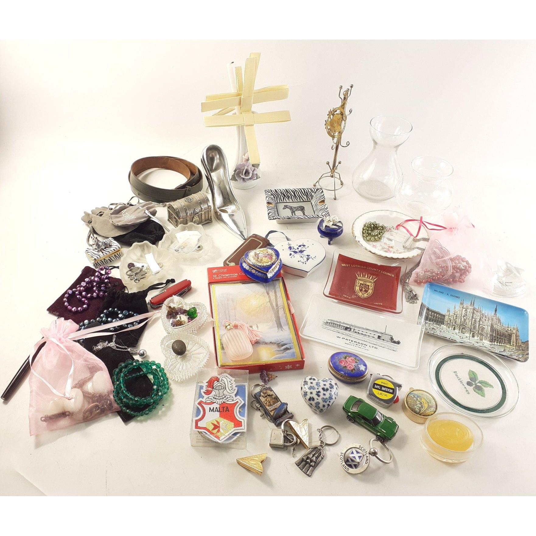 A good mixed collection of decorative actions to include trinket dishes, some small jewellery pieces along with glass vase and much of interest.