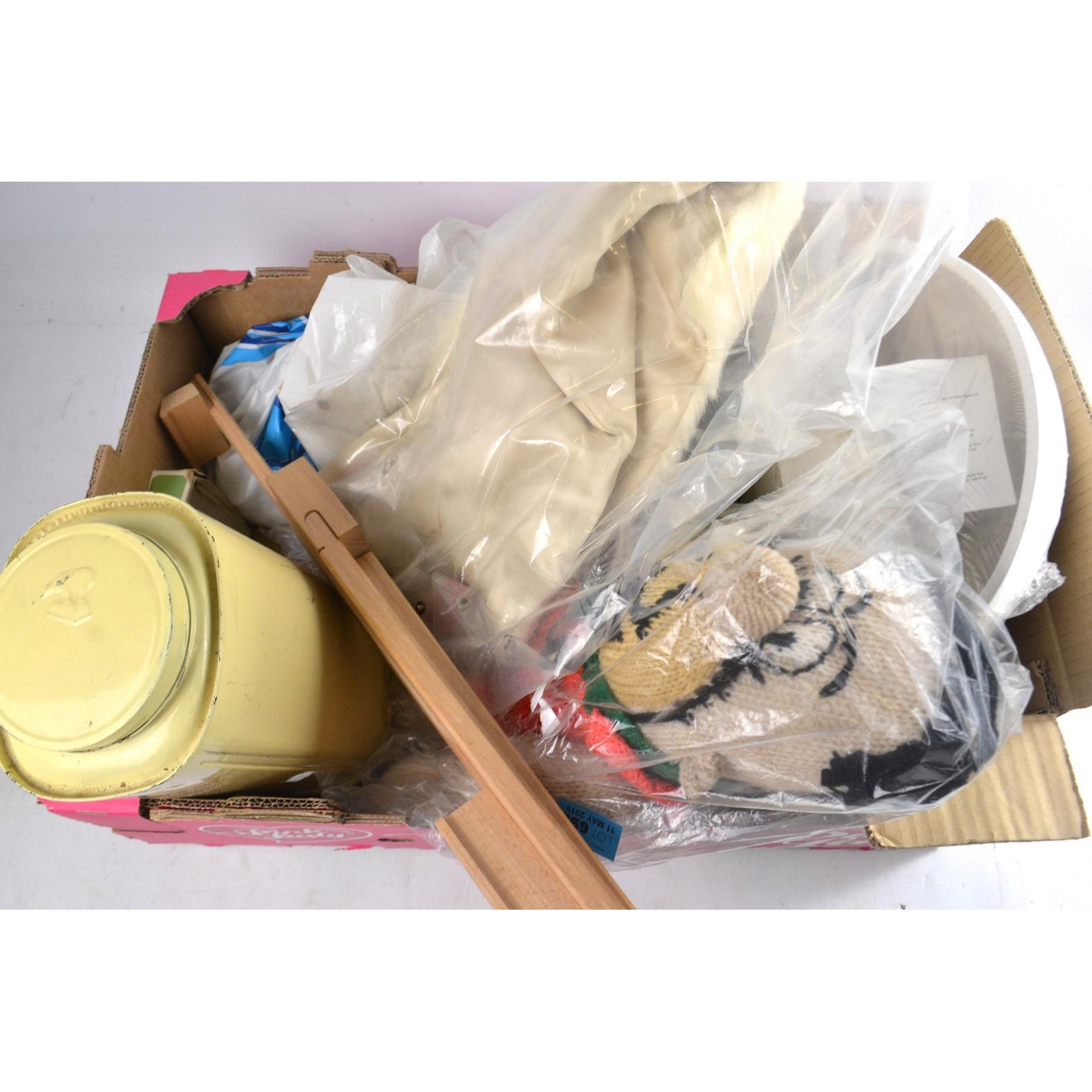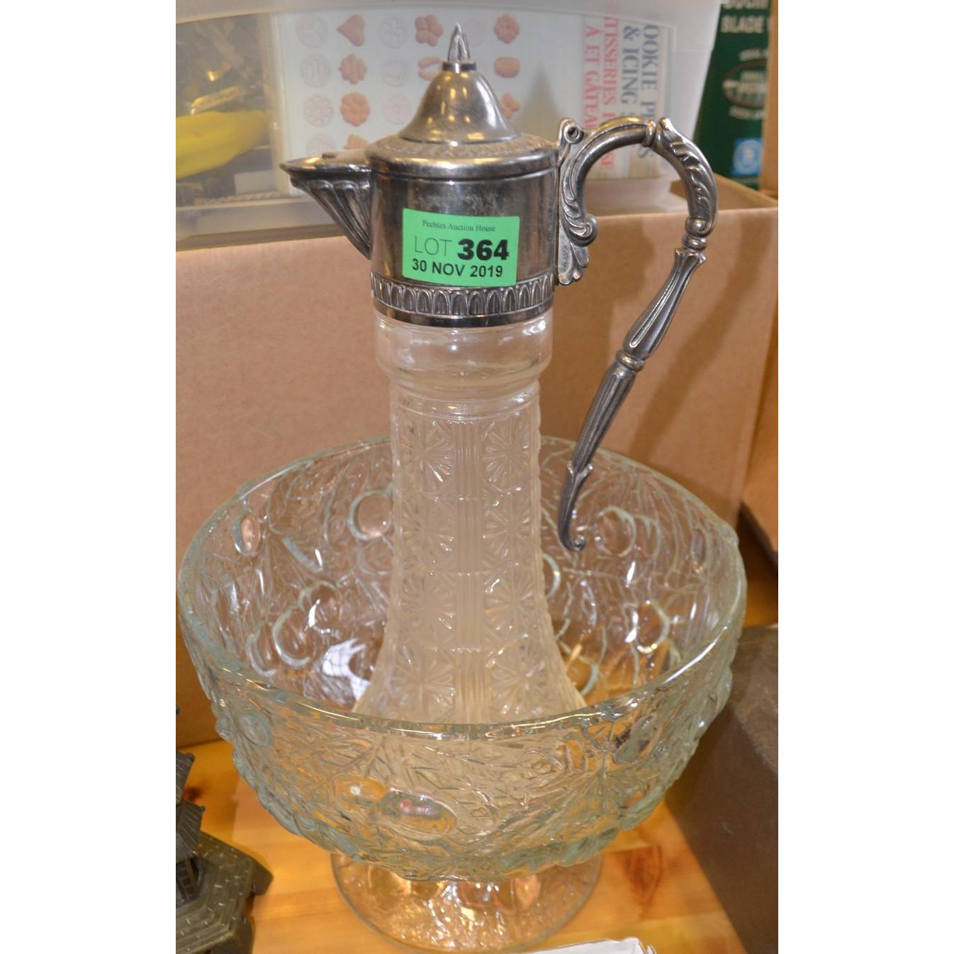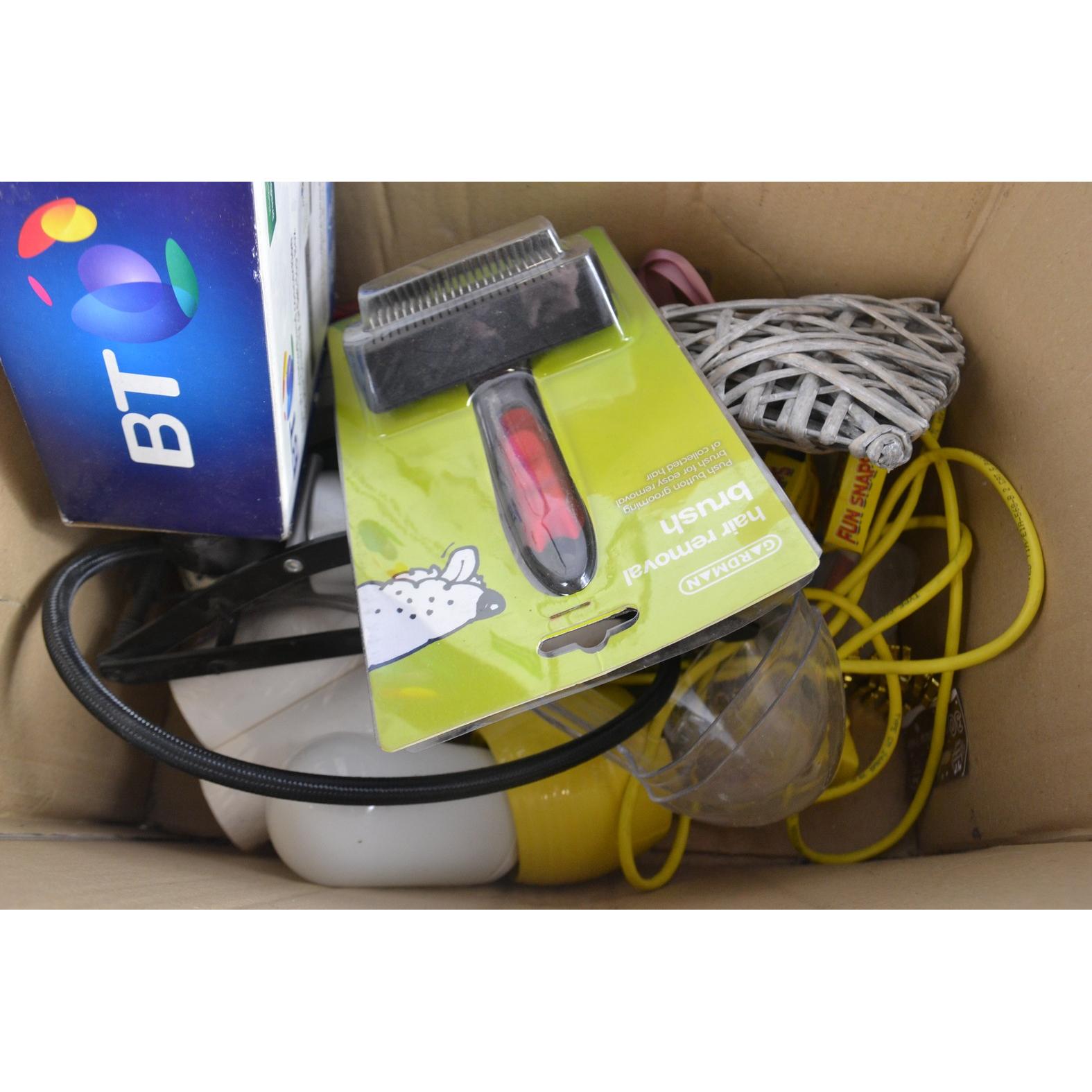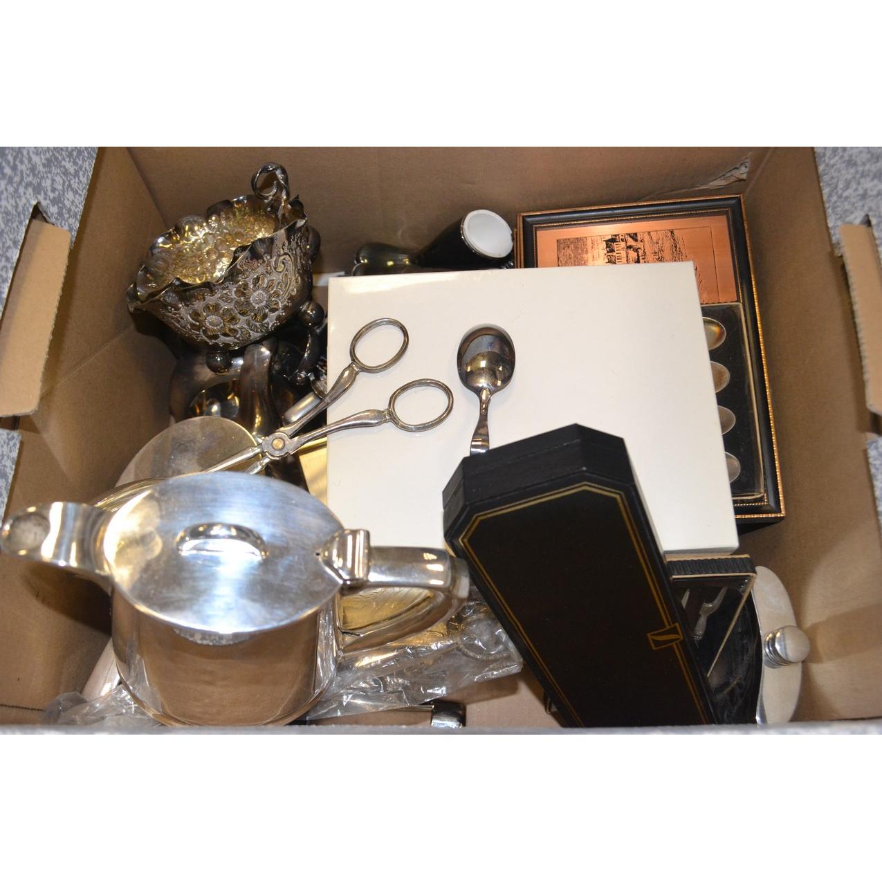 Mixed box to include wren bird ornament, and a large pressed glass vintage plate etc
