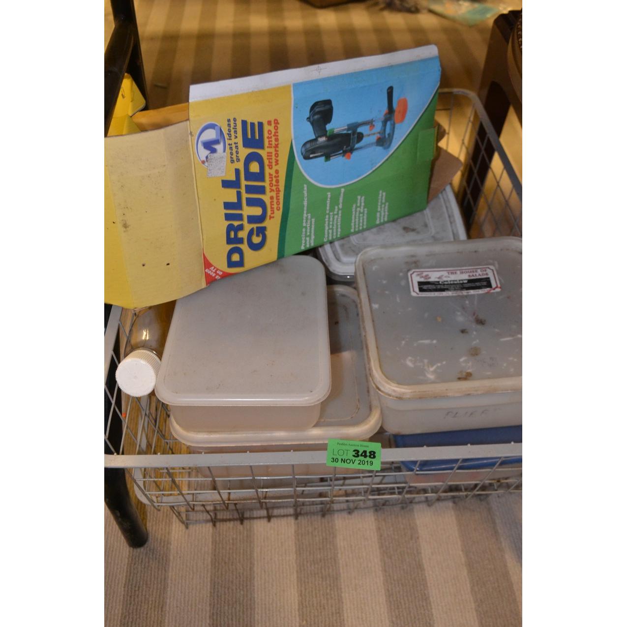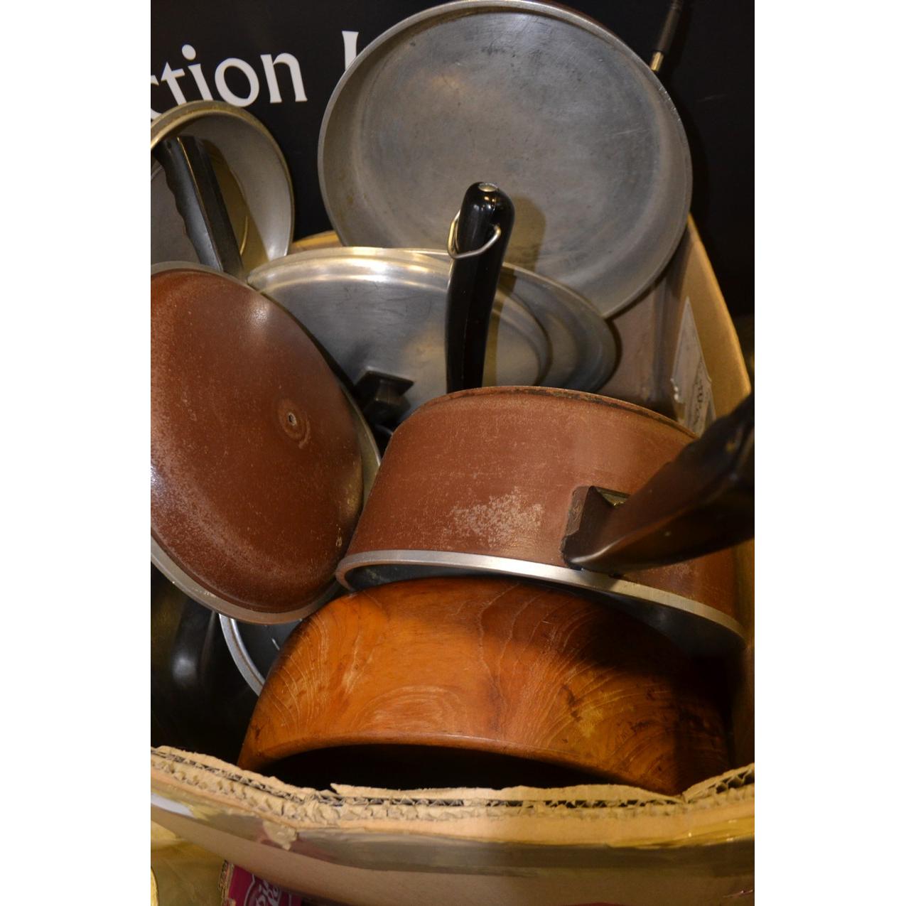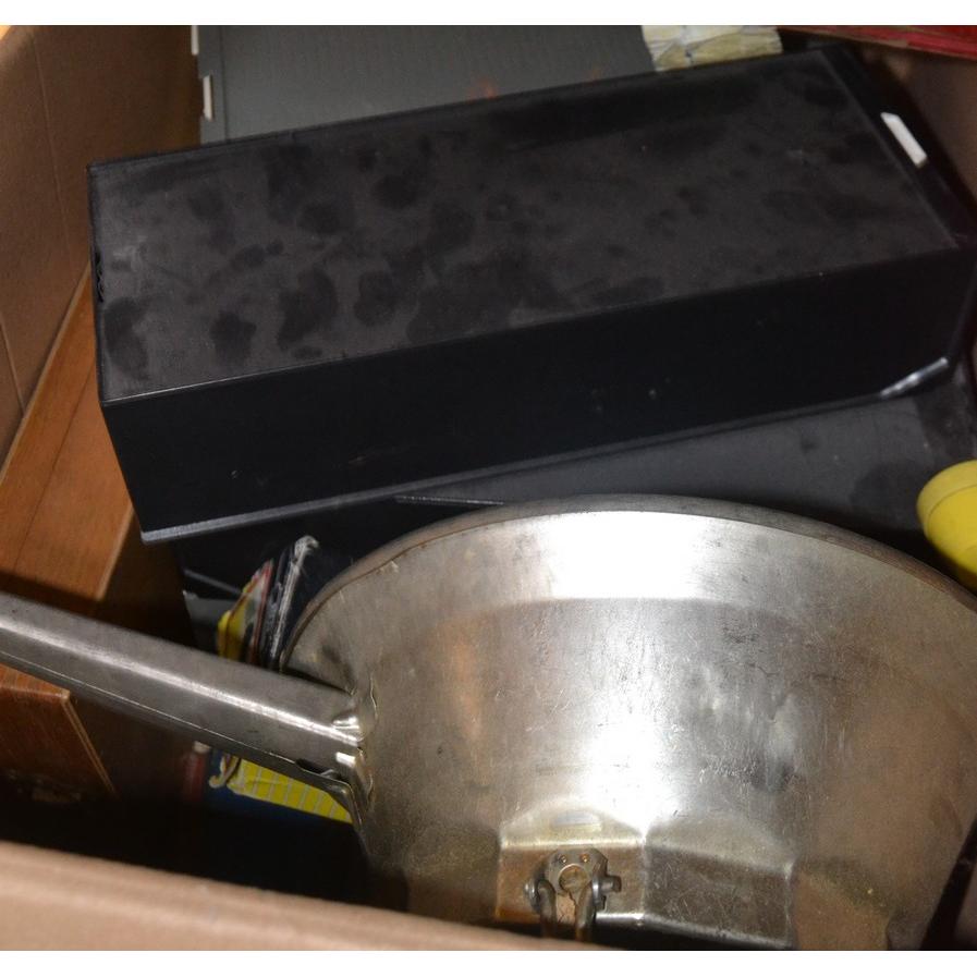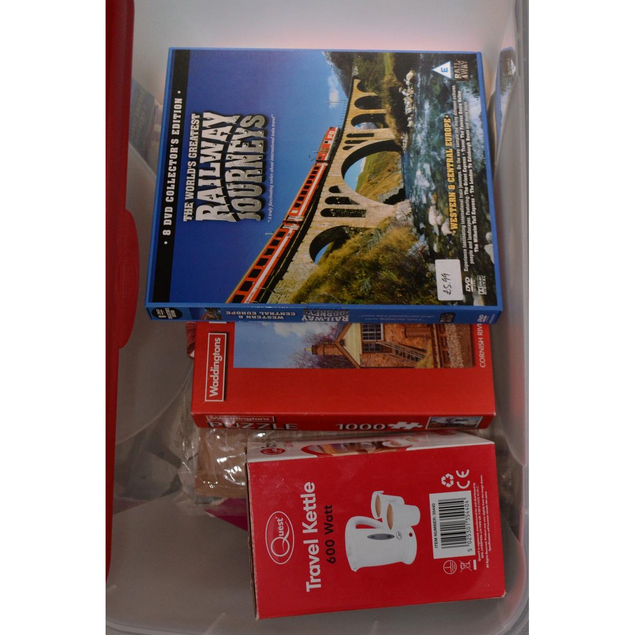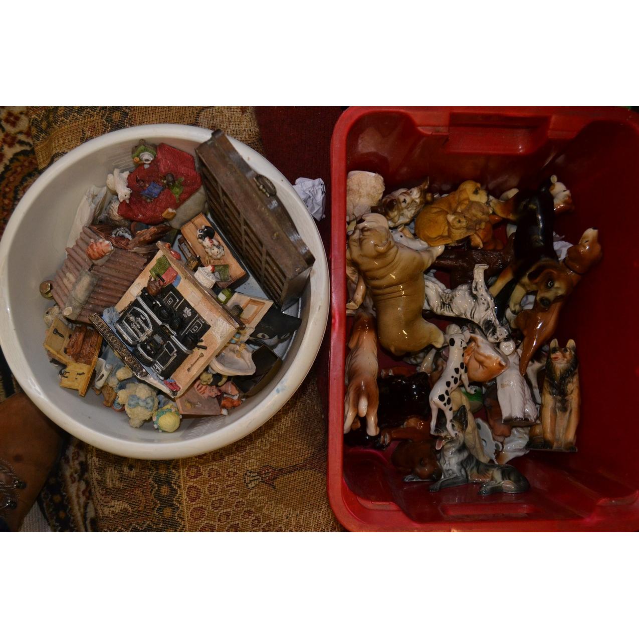 Mixed box to include wren bird ornament, and a large pressed glass vintage plate etc
