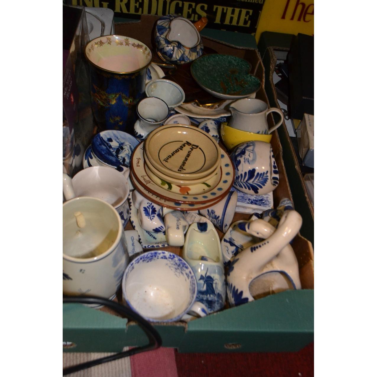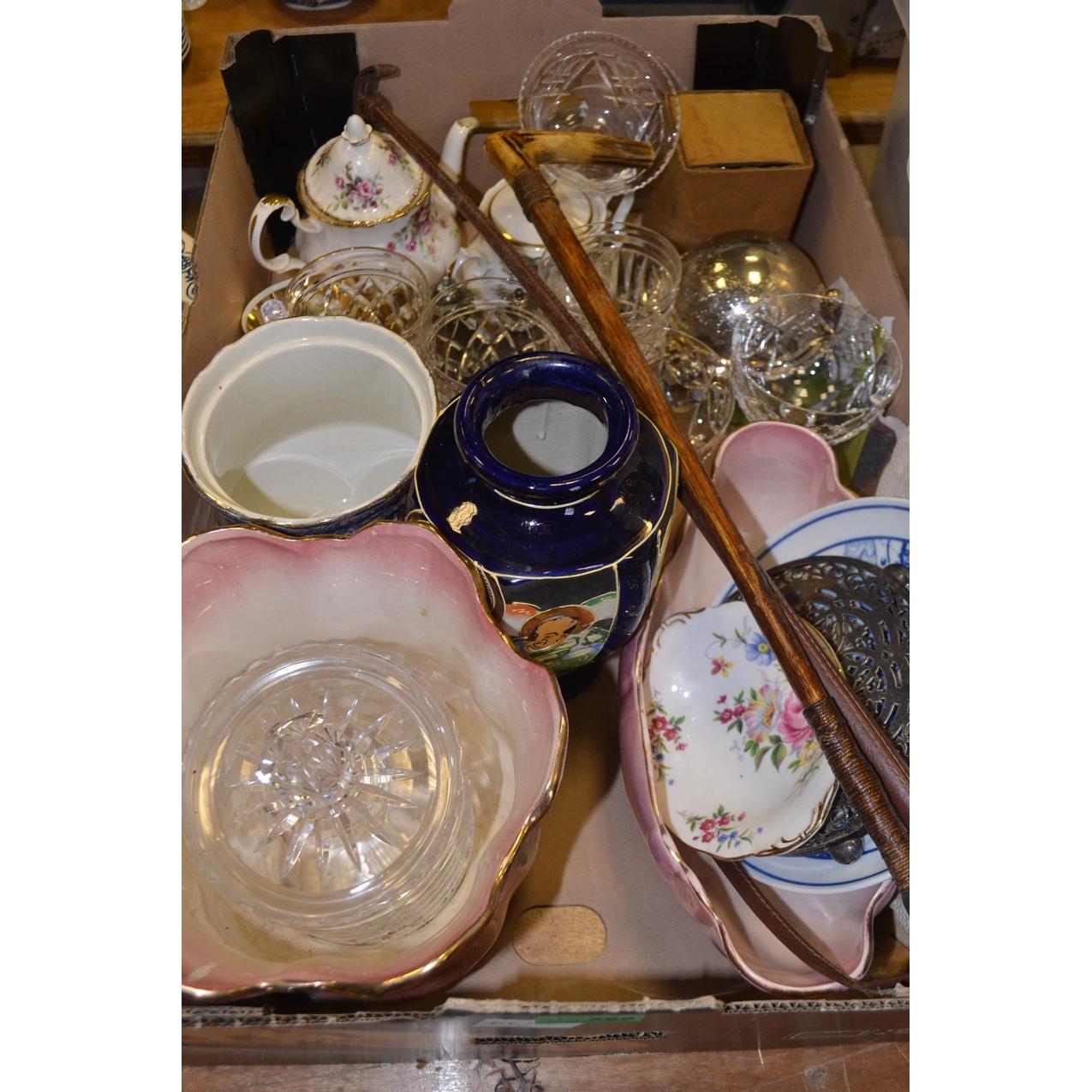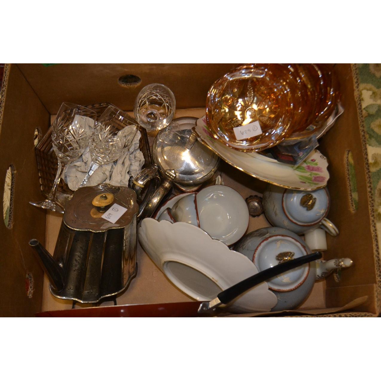 Mixed lot to include some LUSTRE ware, old oil lamp, teasets etc - a lot of items!