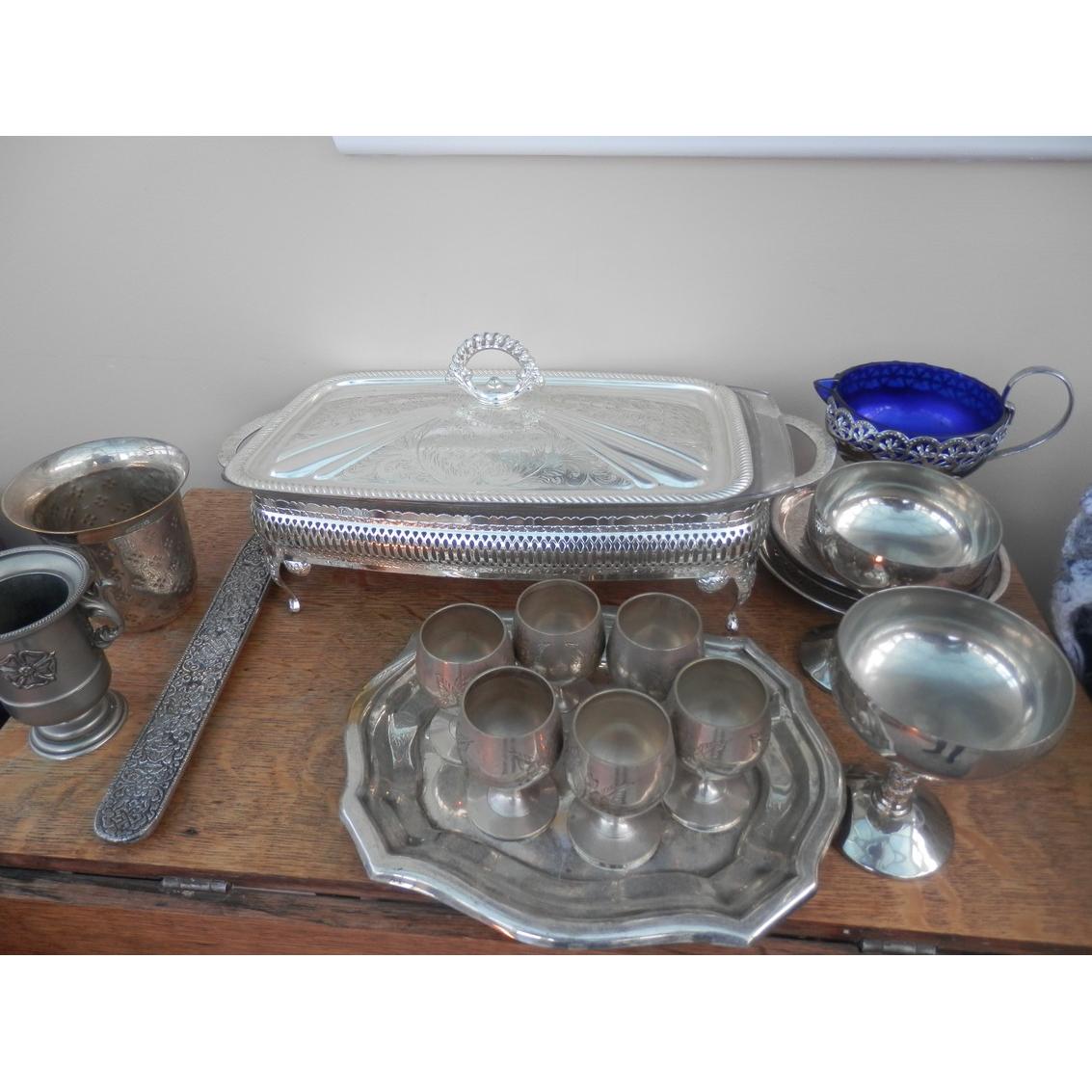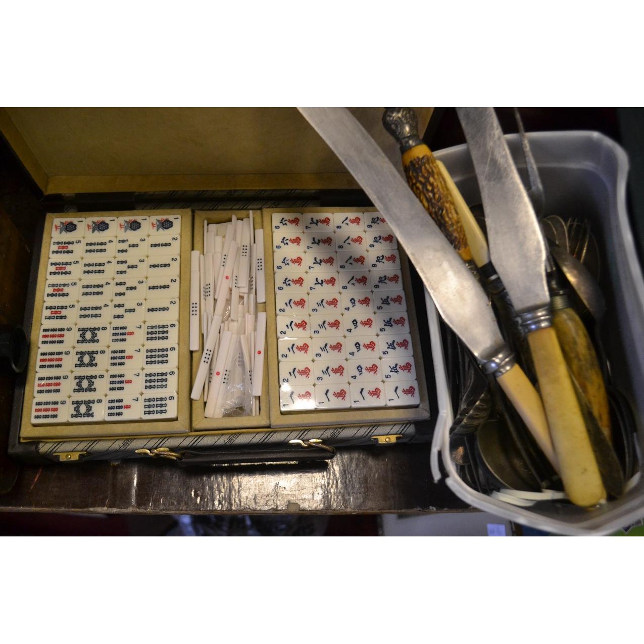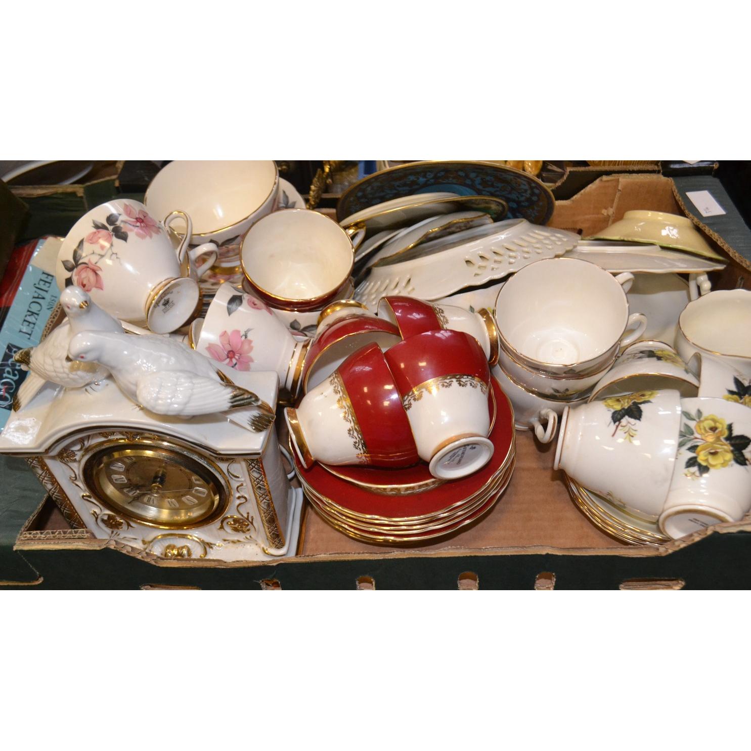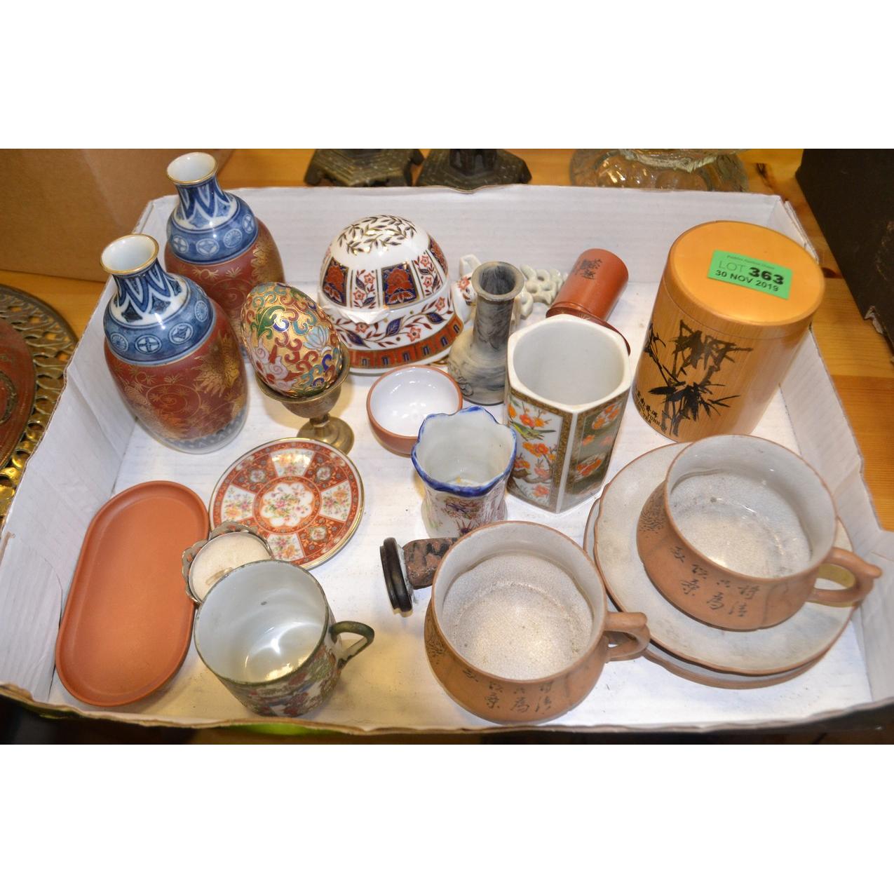 Mixed lot to include some LUSTRE ware, old oil lamp, teasets etc - a lot of items!