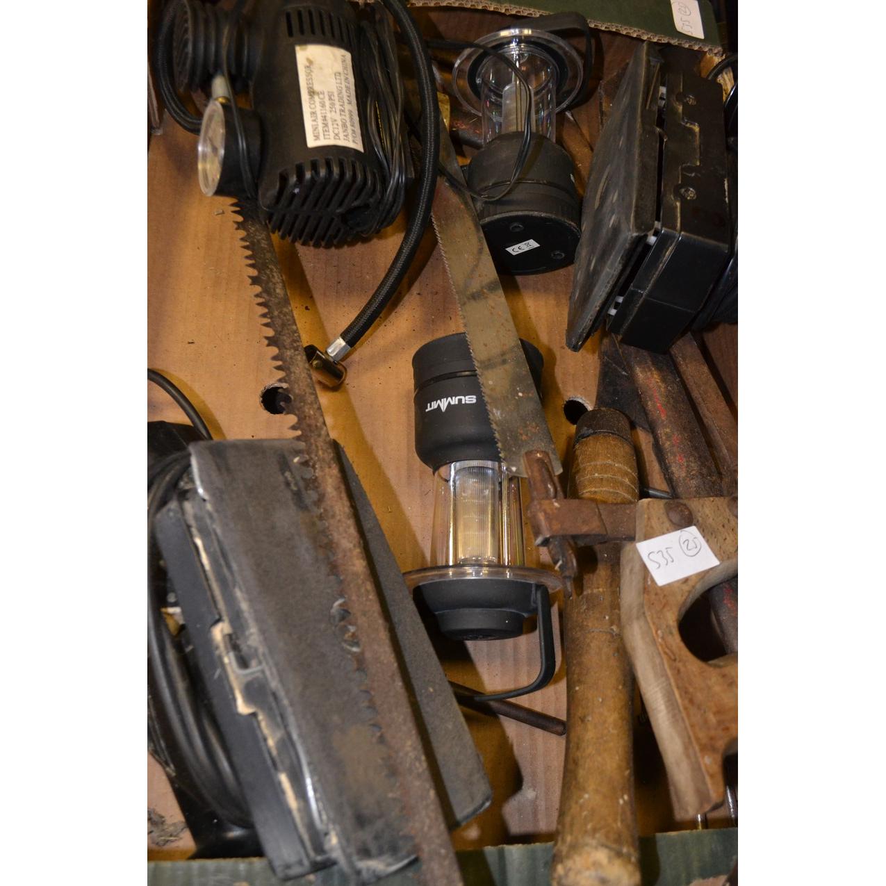 A trio of multimeters, SNAP-ON, TASKMASTER and FLUKE, with some wires and connectors etc and a tyre inflator(unused) by TERRA-S