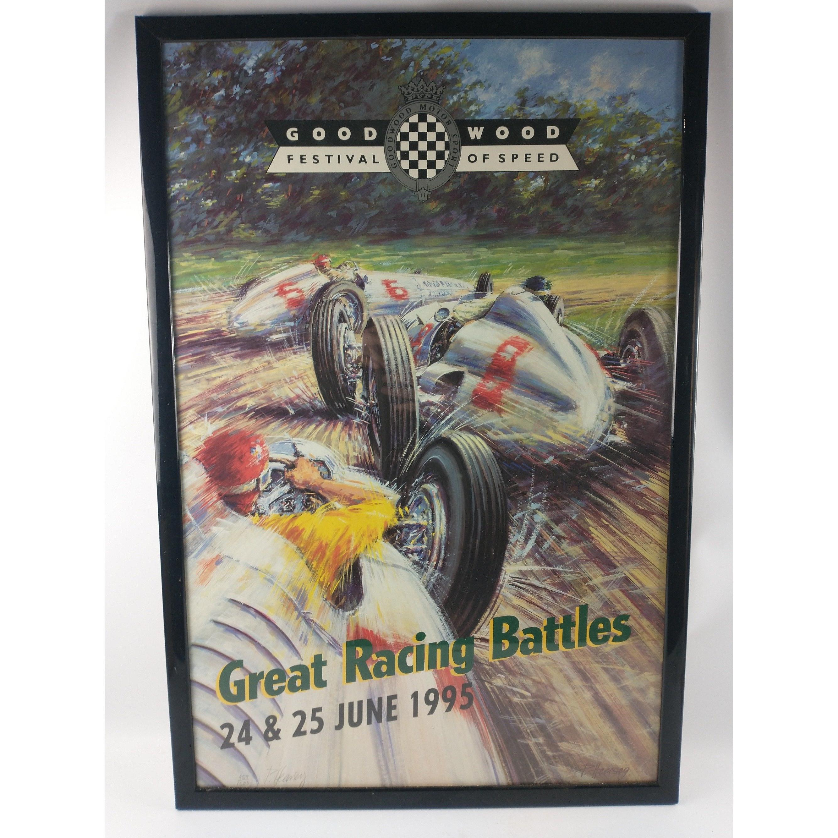 A large GOODWOOD FESTIVAL OF SPEED framed poster depicting Great Racing Battles 24th & 25th June 1995 within a smart glossy black frame