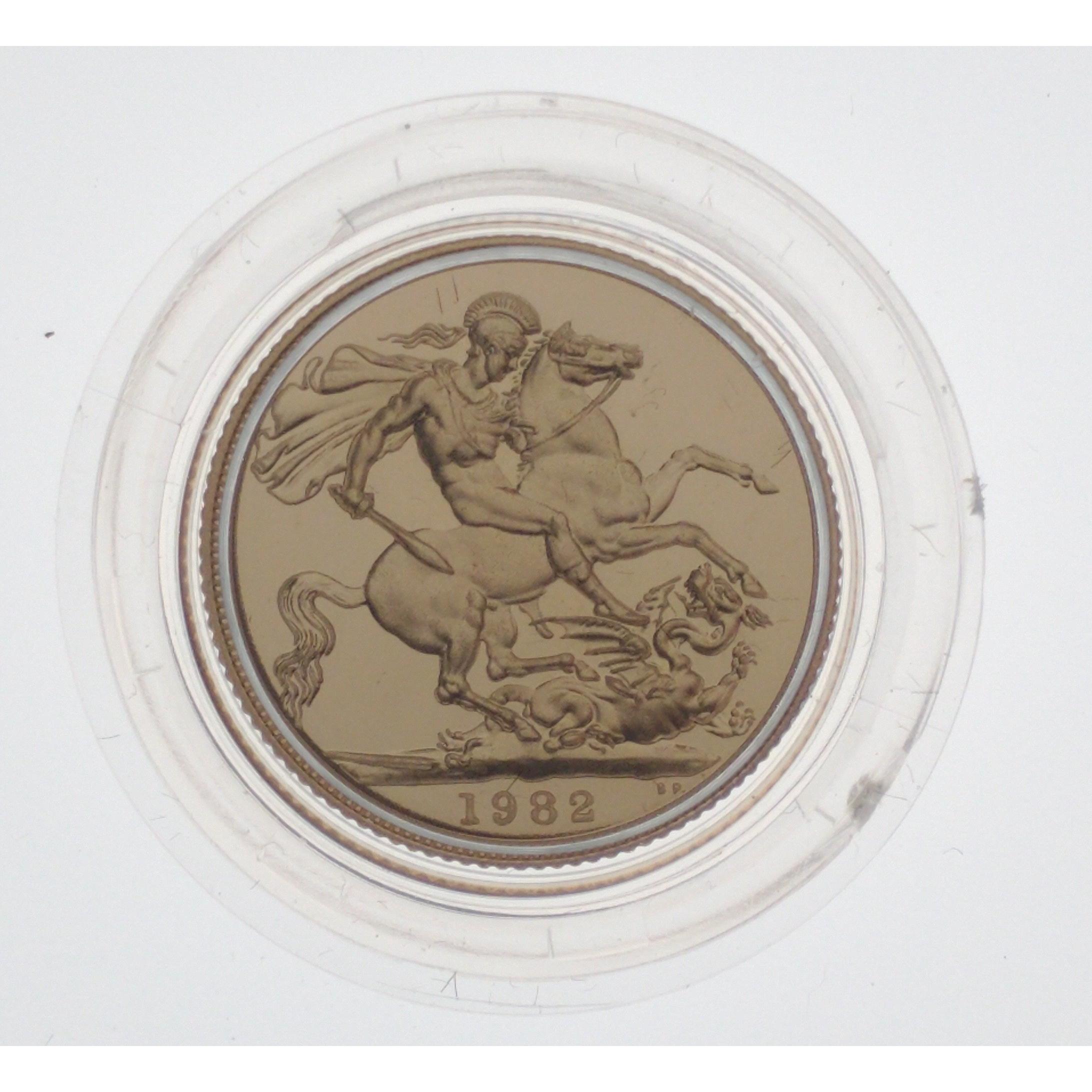 INVESTMENT BUY! A 1982 GOLD PROOF QUEEN ELIZABETH II FULL SOVEREIGN MINT 7.988g/0.257 Troy Ounce within original presentation case and plastic protector covering - THIS IS A MINT COIN!!