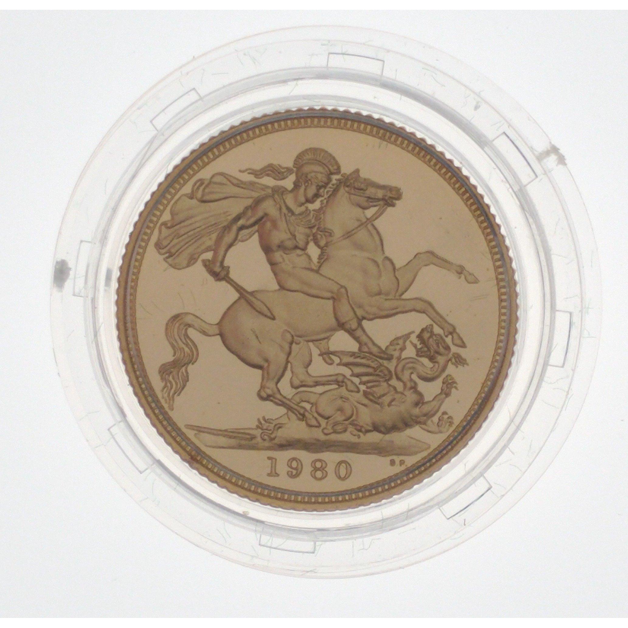 INVESTMENT BUY! A 1980 GOLD PROOF QUEEN ELIZABETH II FULL SOVEREIGN MINT 7.988g/0.257 Troy Ounce within original presentation case and plastic protector covering with ROYAL MINT CARD - THIS IS A MINT COIN WITH EXTRA SHARP DETAIL!!