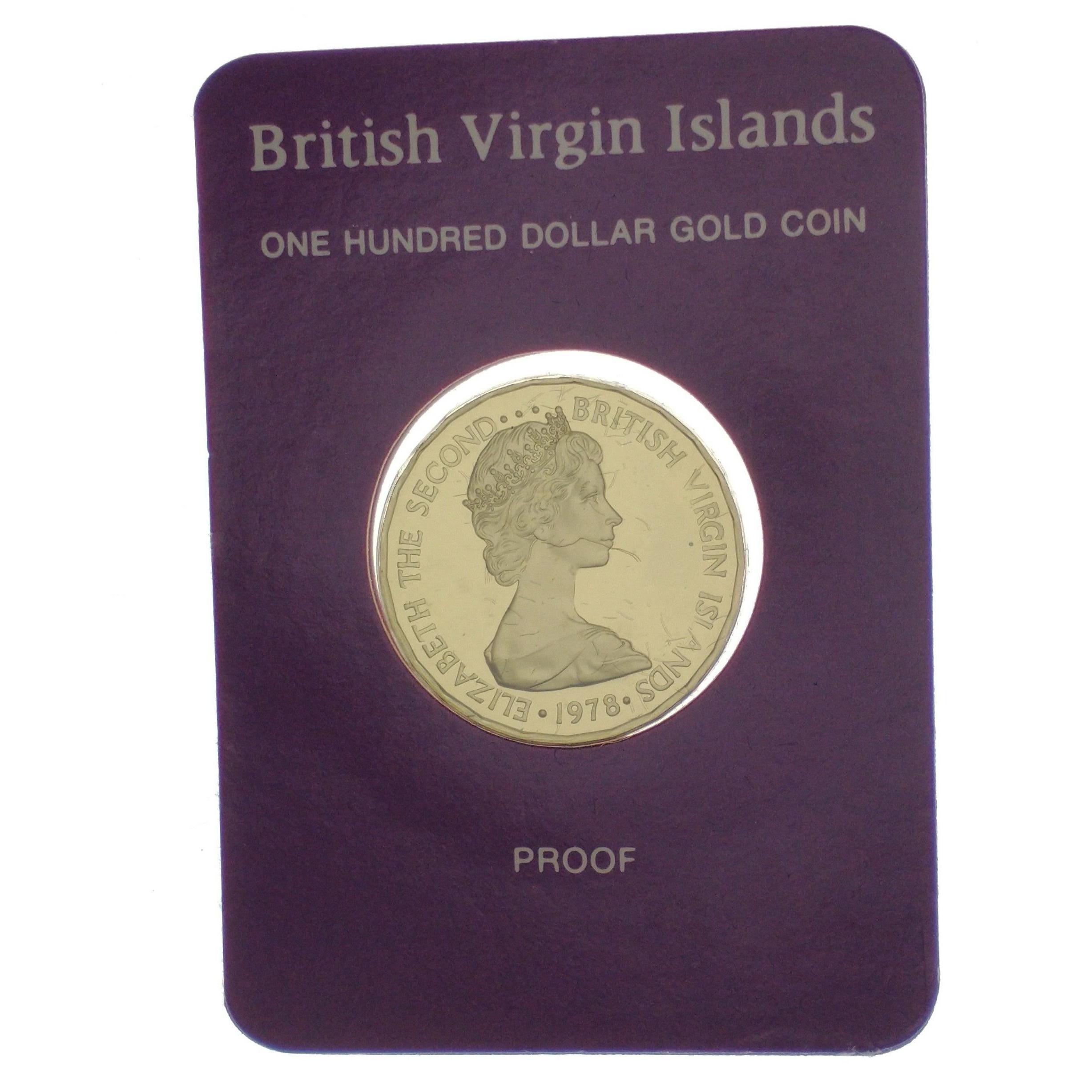 INVESTMENT BUY! A 1978 ONE HUNDRED DOLLAR GOLD COIN OF THE BRITISH VIRGIN ISLANDS MINT COIN with original presentation case and Franklin Mint Certificate Of Authenticity, issued to commemorate the 25th anniversary of the coronation of Her Majesty Queen Elizabeth 11