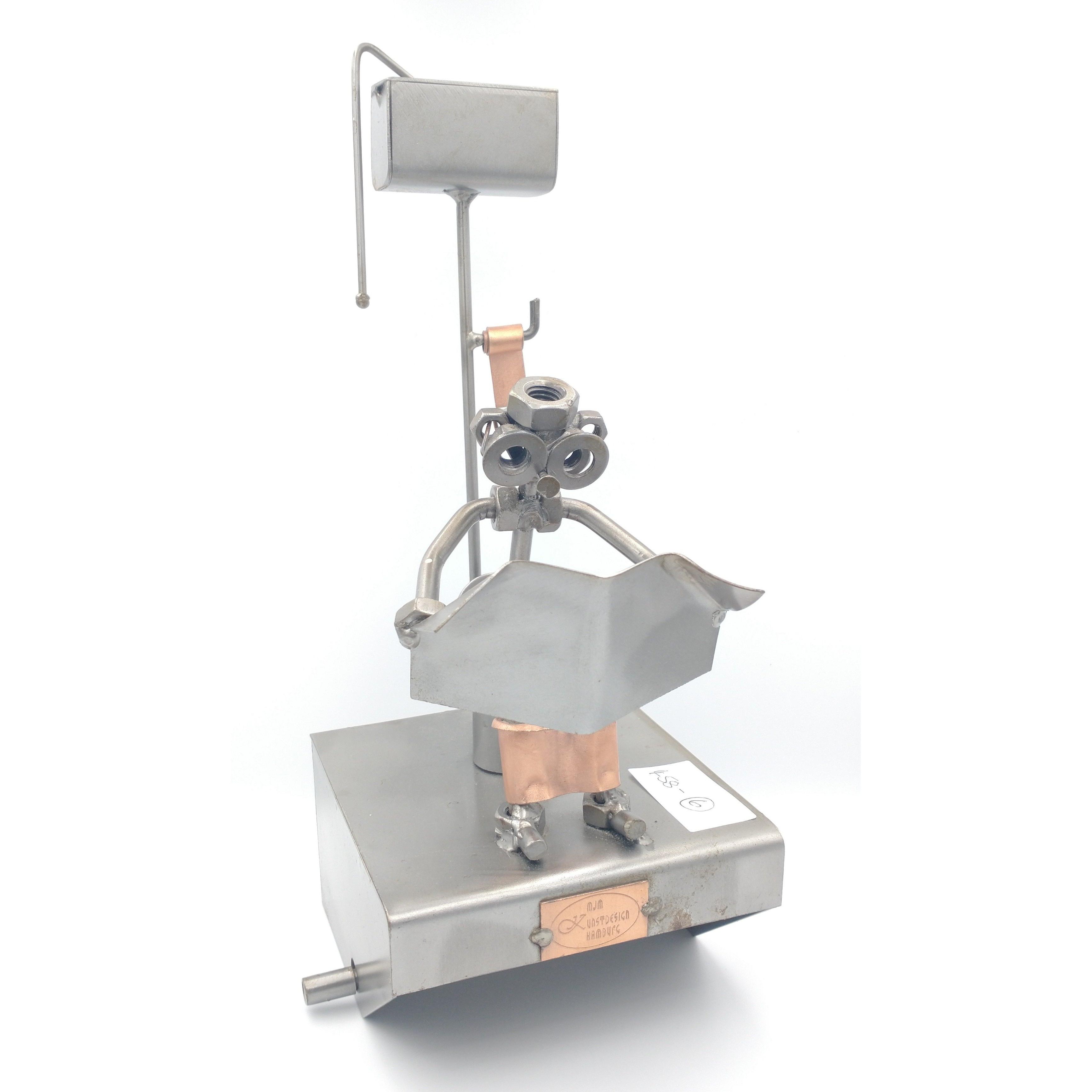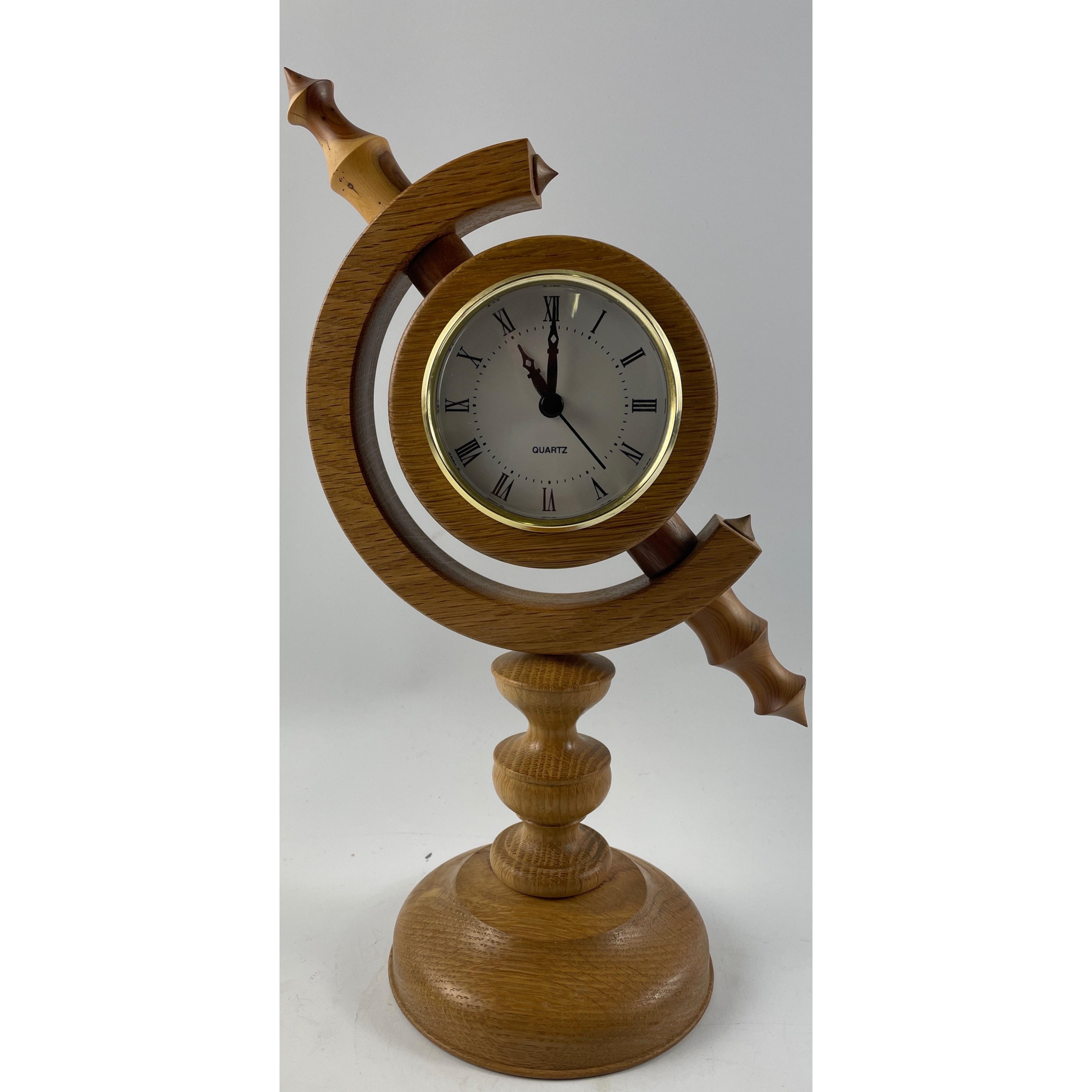 A most unusual WOODEN CLOCK which rotates within its setting, stands 30cm high and requires 1 x AA battery.